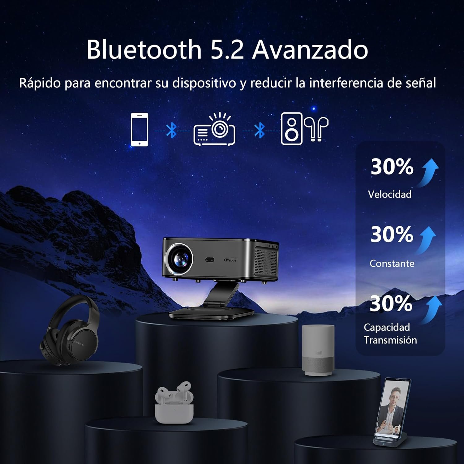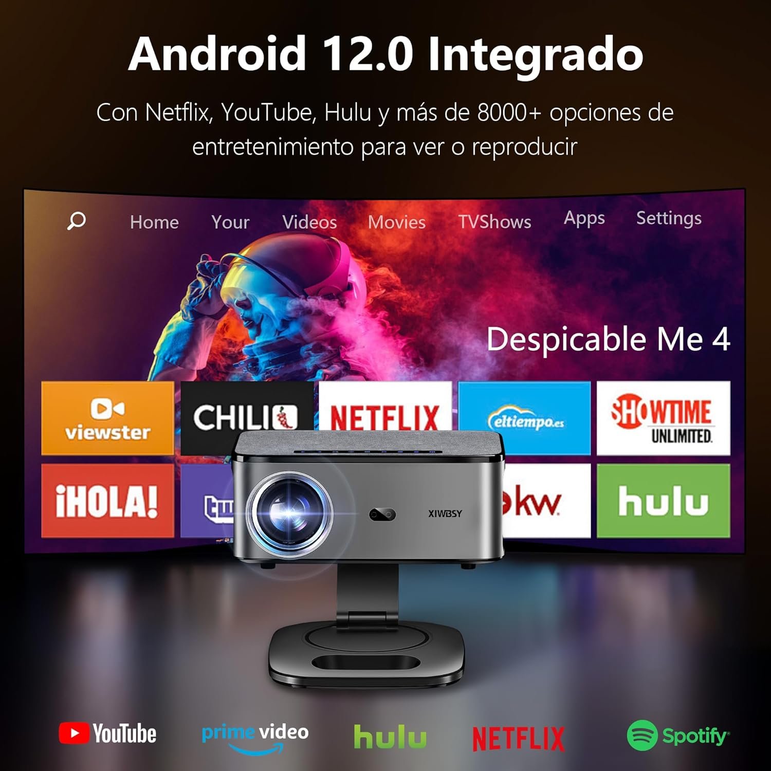 【1000 Ansi y enfoque automático】 Proyector XIWBSY 4K compatible con WiFi 6 y Bluetooth 5.3, gira 360°, 35000 lúmenes, proyector Android Home Cinema Video, proyector portátil 4K