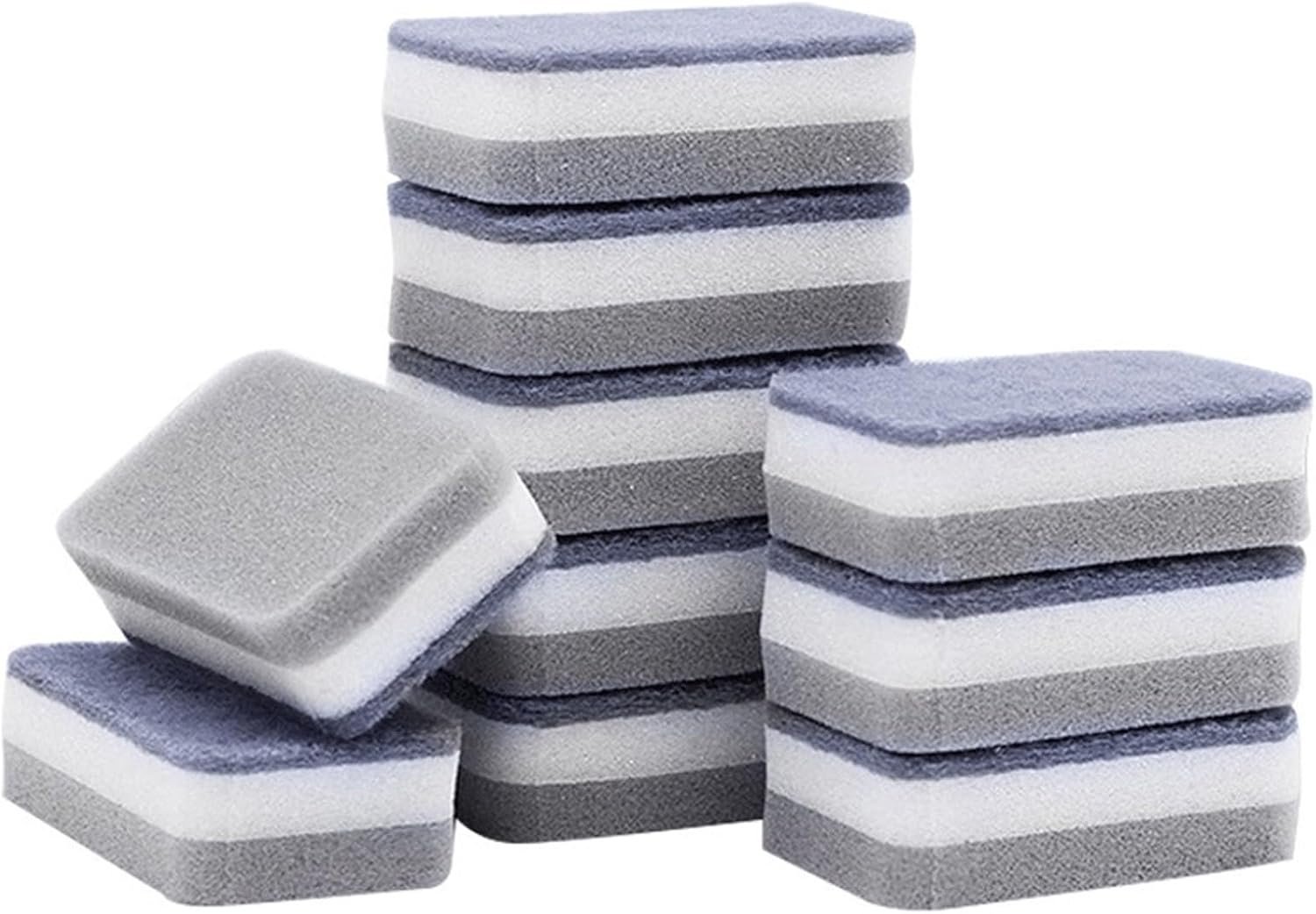 10 Esponjas para fregar suelos, esponja para lavar platos, cepillo de limpieza para cocina, garaje, baño, limpieza larga (gris, 10, 5 x 7 cm)