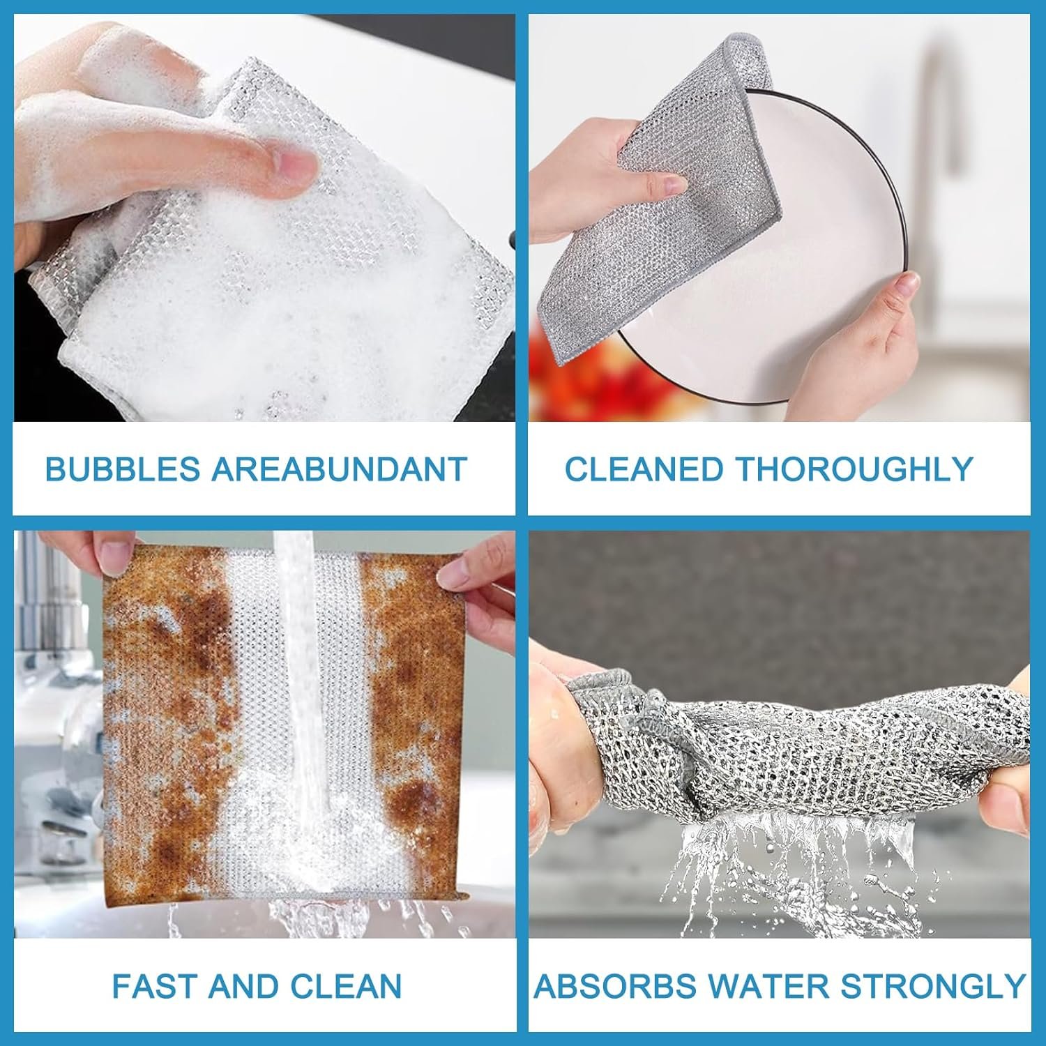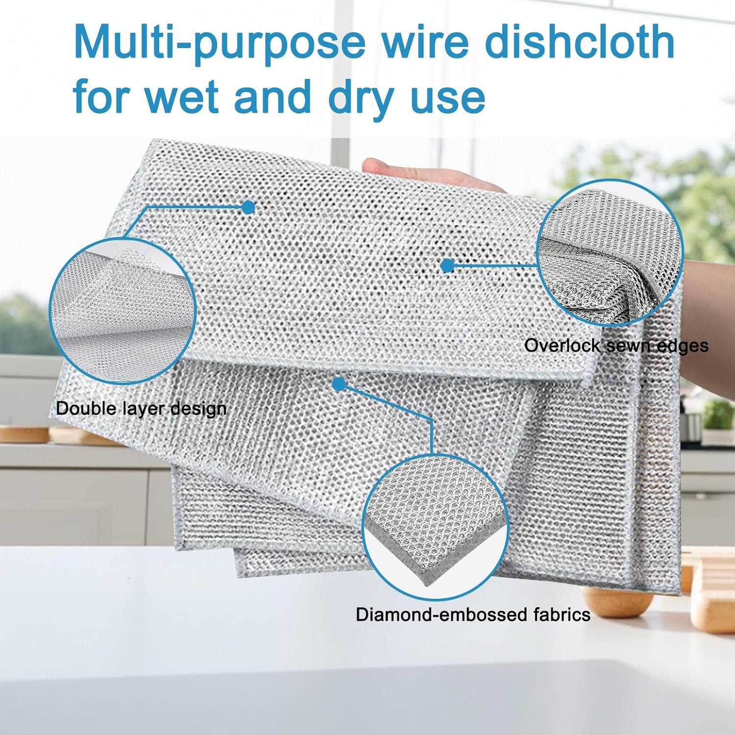 (10 piezas) Estropajo de Aluminio – Paños de Limpieza para Suciedad Difícil, Paños de Limpieza Reutilizables (Doble Capa), Estropajos de Cocina, Paños de Alambre Multiusos.