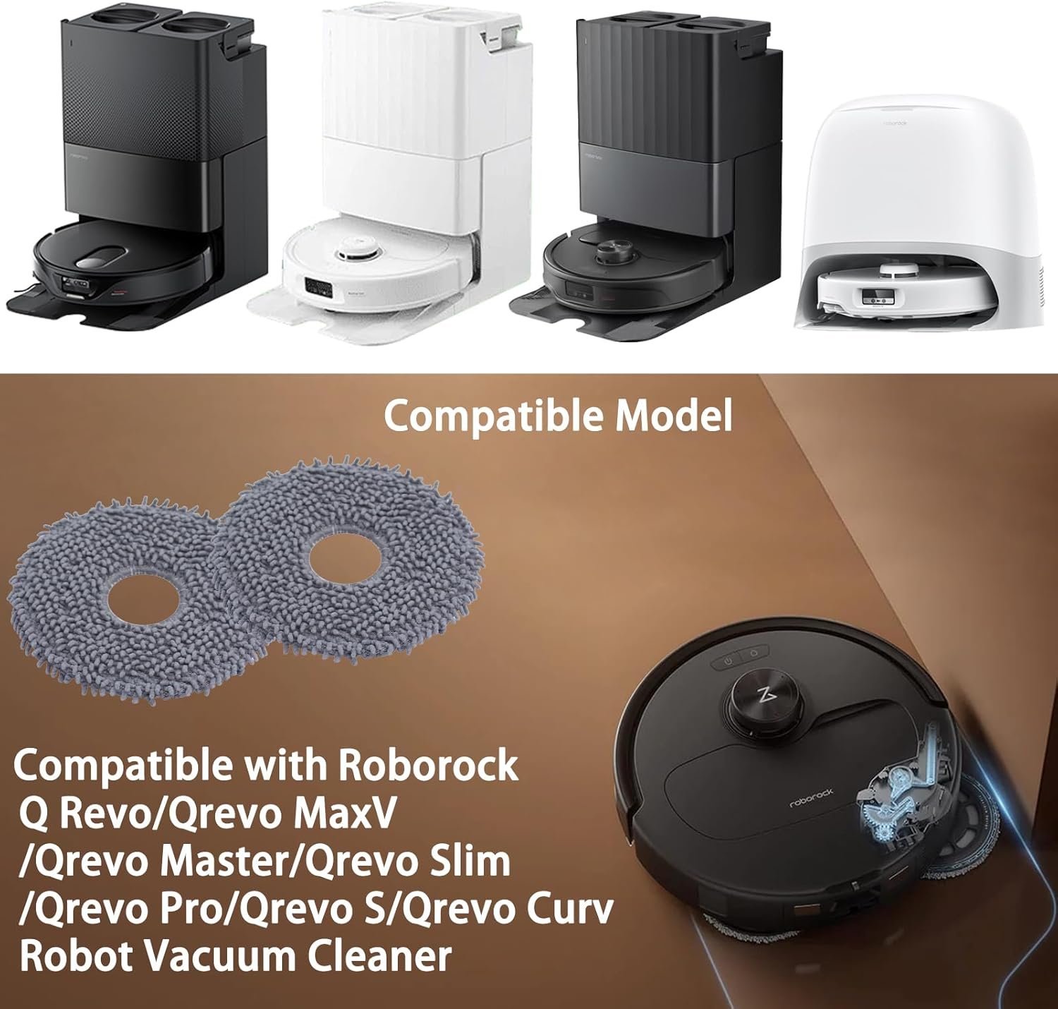 Modelos compatibles Estas almohadillas para trapeador son compatibles con el robot aspirador Roborock Q Revo / Qrevo MaxV / Qrevo Master / Qrevo Slim / Qrevo Pro / Qrevo S / Qrevo Curve/QV 35S. Verifique el tipo de máquina antes de realizar el pedido. Materiales de alta calidad y mano de obra fina Las almohadillas lavables para trapeador están hechas de microfibra de alta calidad, buena fricción y capacidad de limpieza en profundidad. Bordes ajustados, no fáciles de caer, lavables y duraderos. LAVABLE Y REUTILIZABLE La almohadilla del trapeador es más absorbente y se seca rápidamente, se limpia completamente en la estación de lavado y tiene una larga vida útil. Fácil instalación La almohadilla para trapeador es muy fácil de instalar. Simplemente pegue el paño en la tira de velcro del robot limpiasuelos. Paquete rentable: viene con 8 almohadillas de limpieza, suficientes para durar de 9 a 12 meses. Limpie y reemplace las almohadillas con regularidad para mantener el rendimiento óptimo de su robot aspirador.