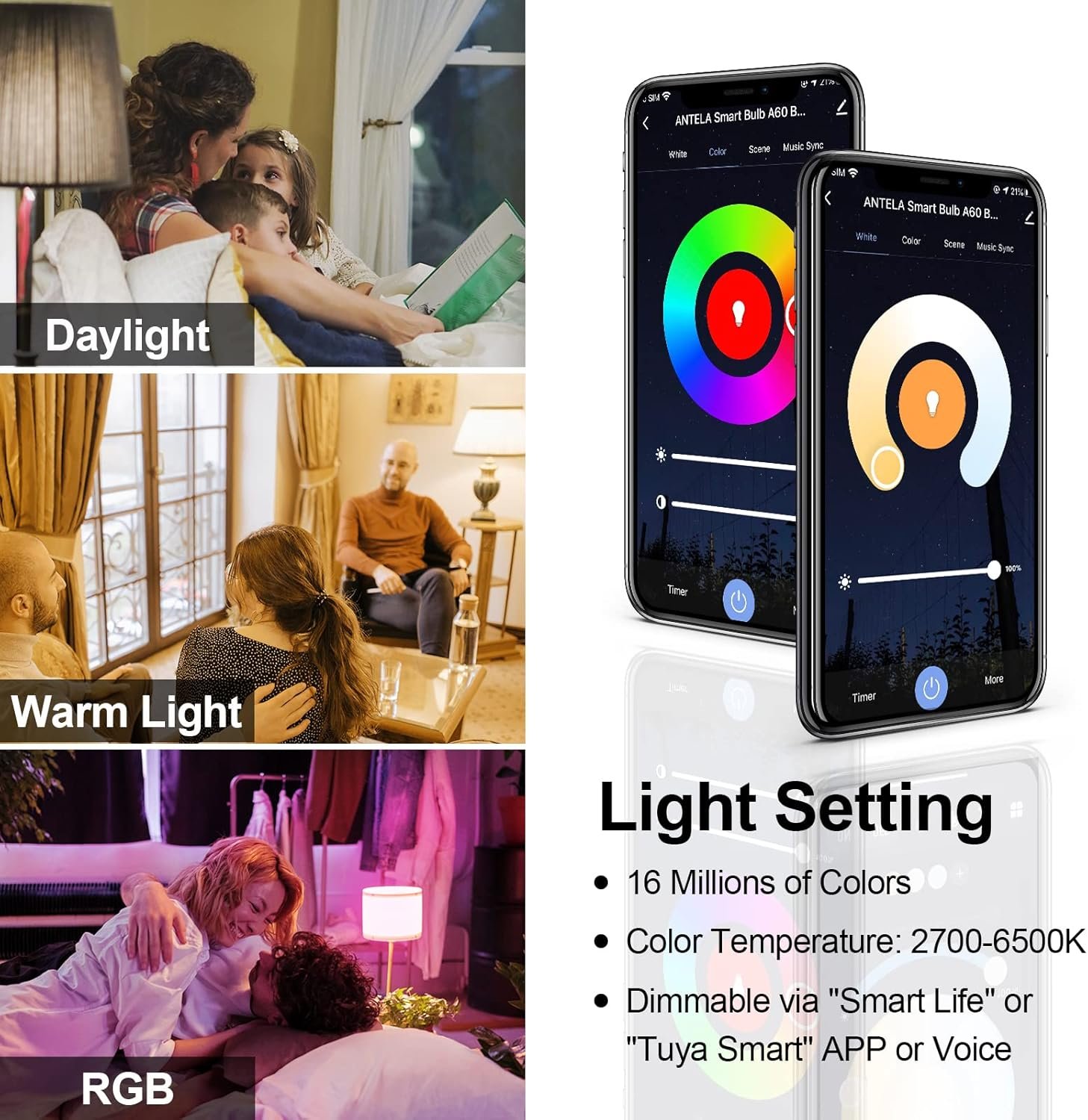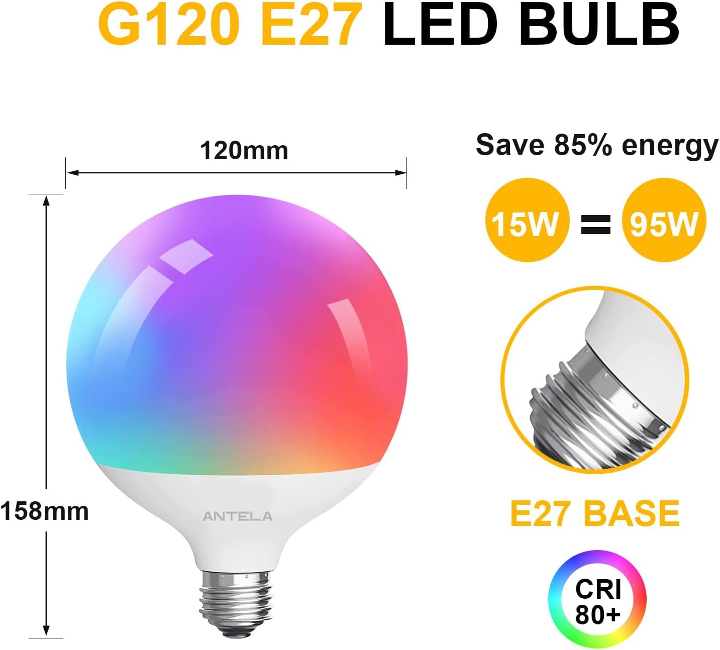 Fotos: ANTELA Bombilla Inteligente Alexa E27, Bombilla Led Wifi 15W 1521 Lm, Compatible con Alexa/Google Home, Luz RGB Fría y Cálida 2700K-6500K, Wifi 2.4G Hz, 1PC