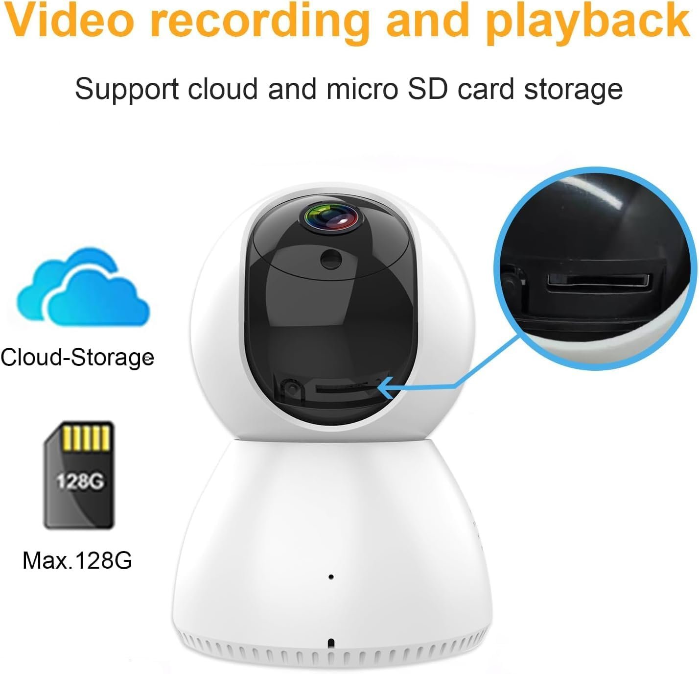 La cámara wifi utiliza tecnología de encriptación avanzada para garantizar que nadie pueda acceder a sus datos. Con el almacenamiento en la nube, puede evitar el riesgo de perder datos de vídeo de su tarjeta micro SD. Además, esta cámara admite tarjetas micro SD de hasta 128 GB.