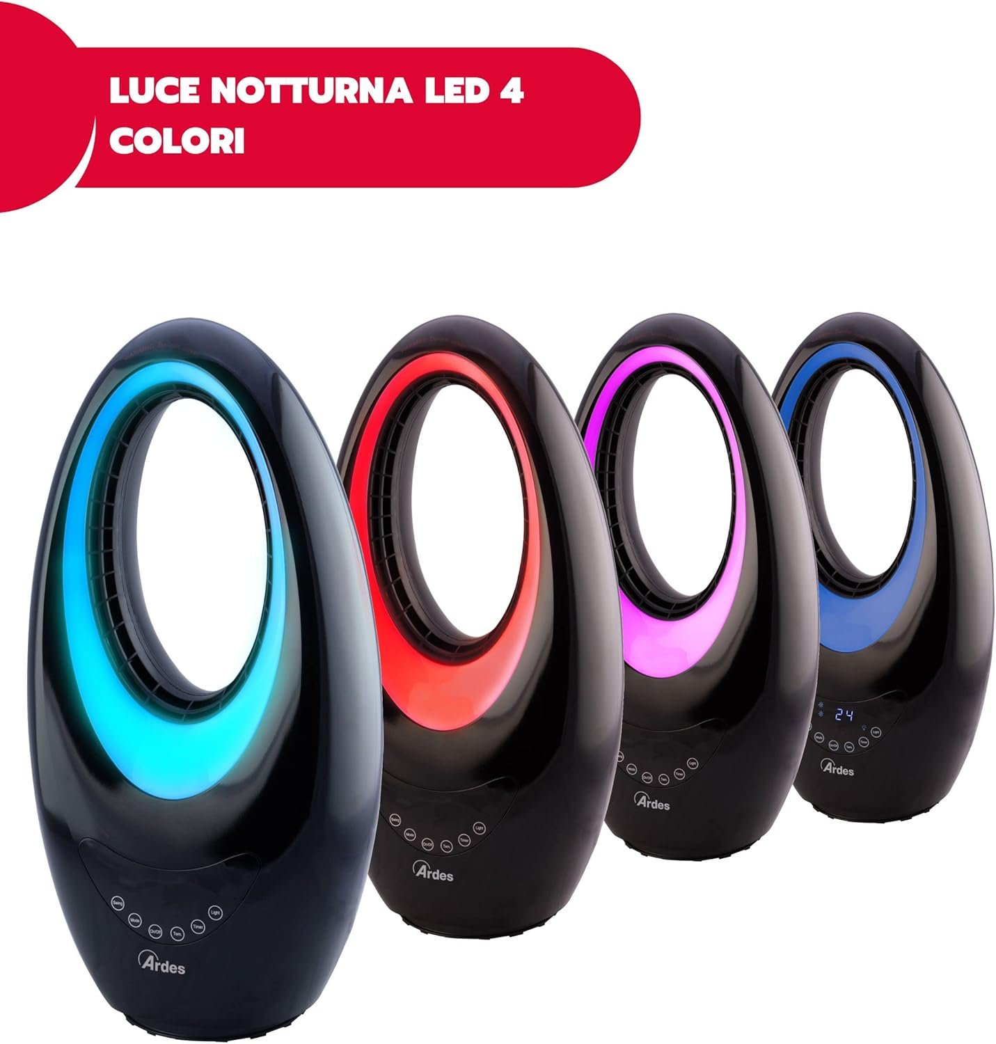 Fotos: Ardes Sauron Bladeless AR4BL1 Calefactor cerámico sin cuchillas con mando a distancia, luz nocturna LED y temporizador, 2000W, negro
