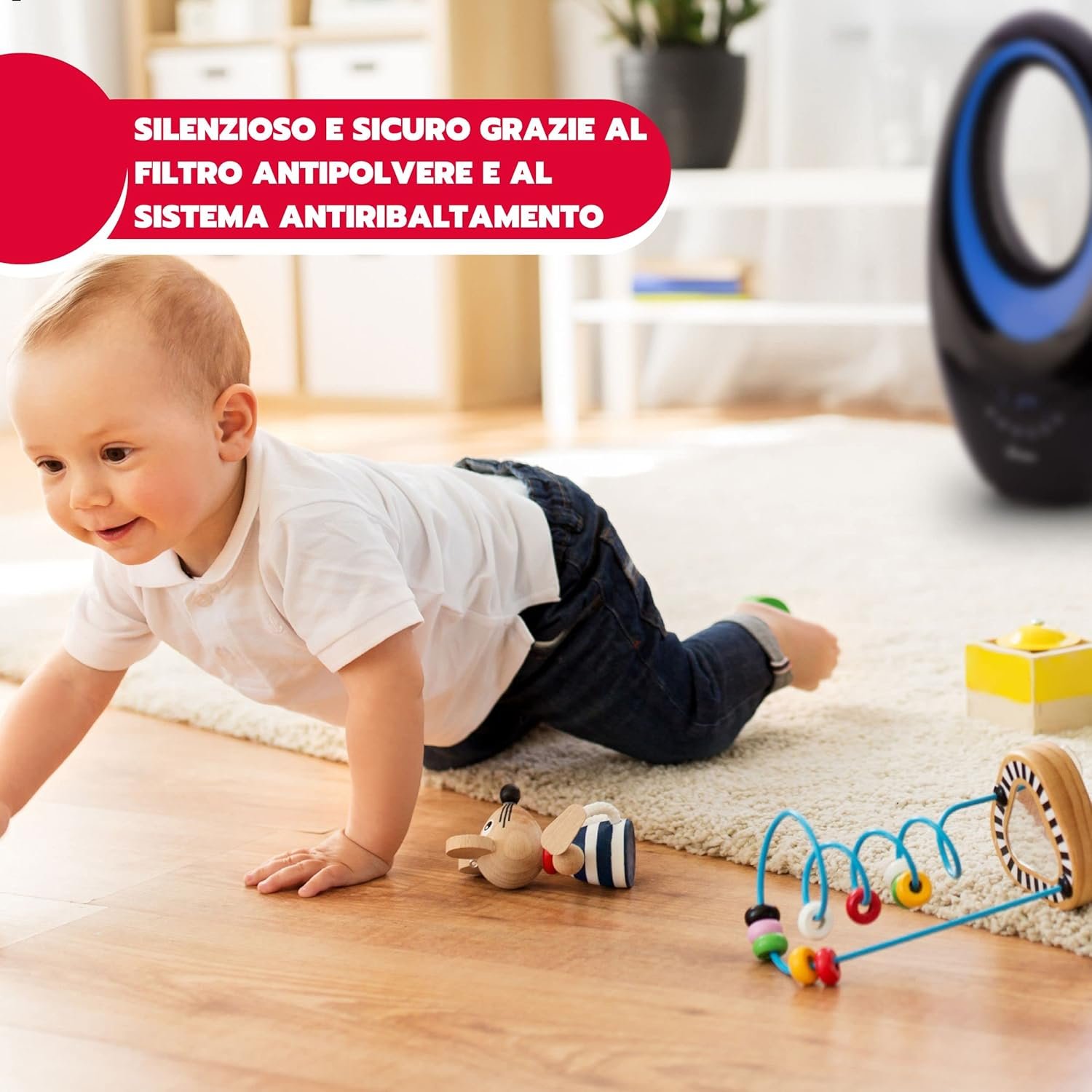 COMPACTO Y SEGURO: Las dimensiones del ventilador cerámico oscilante en LxPxH son: 29 cm x 18 cm x 58 cm; por tanto es apto para espacios reducidos, y eficaz ya que se calienta en pocos minutos con una potencia de 2000W; Además, SAURON es un calentador seguro, gracias al sistema antivuelco y al sistema de protección antisobrecalentamiento.
