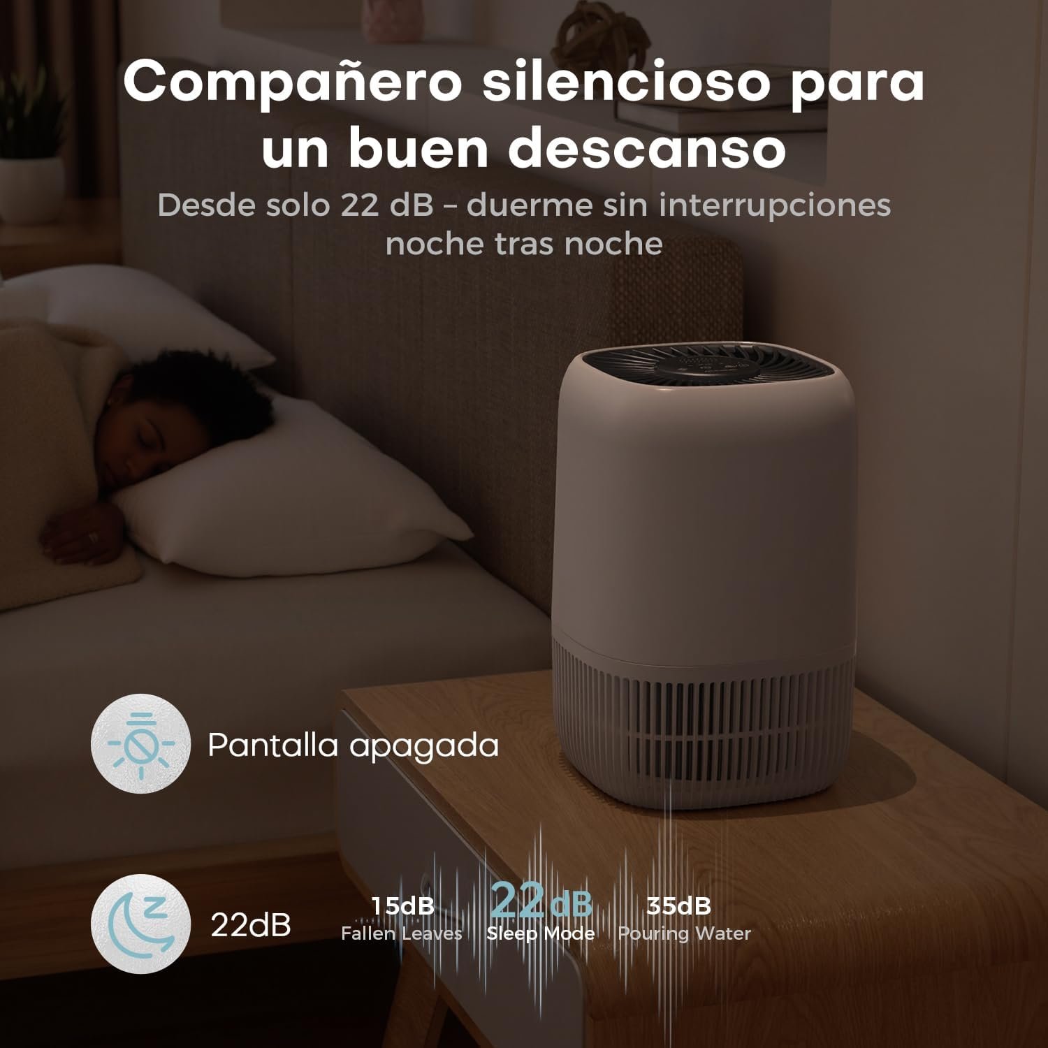 AROEVE Purificador de Aire con Filtro HEPA H13 de 3 Etapas, con un Consumo Energético de Sólo 5W, Silencioso a 22db con Aroma, Combate el Polen, el Humo y los Pelos de Mascotas