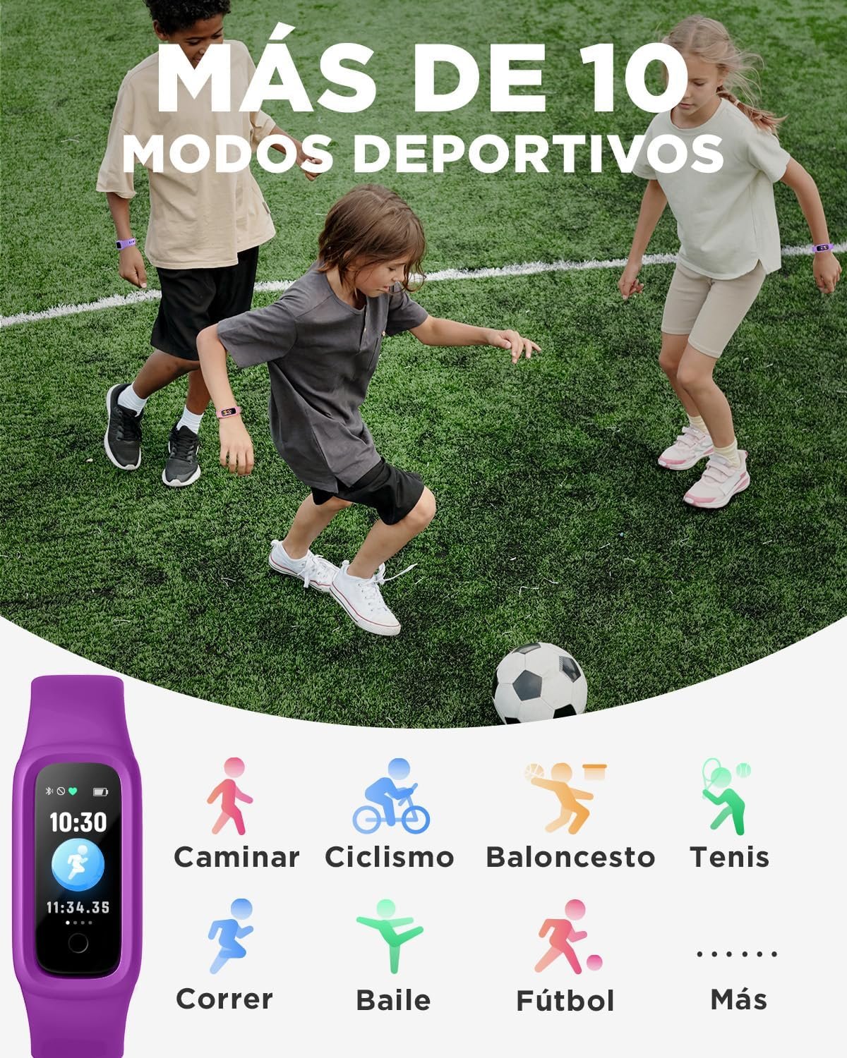 Fotos: BIGGERFIVE Vigor 2 L Reloj Fitness para Niños y Niñas de 5 a 15 Años, Seguimiento de Actividad, Pulsómetro y Sueño, IP68 Resistente al Agua, Podómetro, Contador de Calorías, Morado