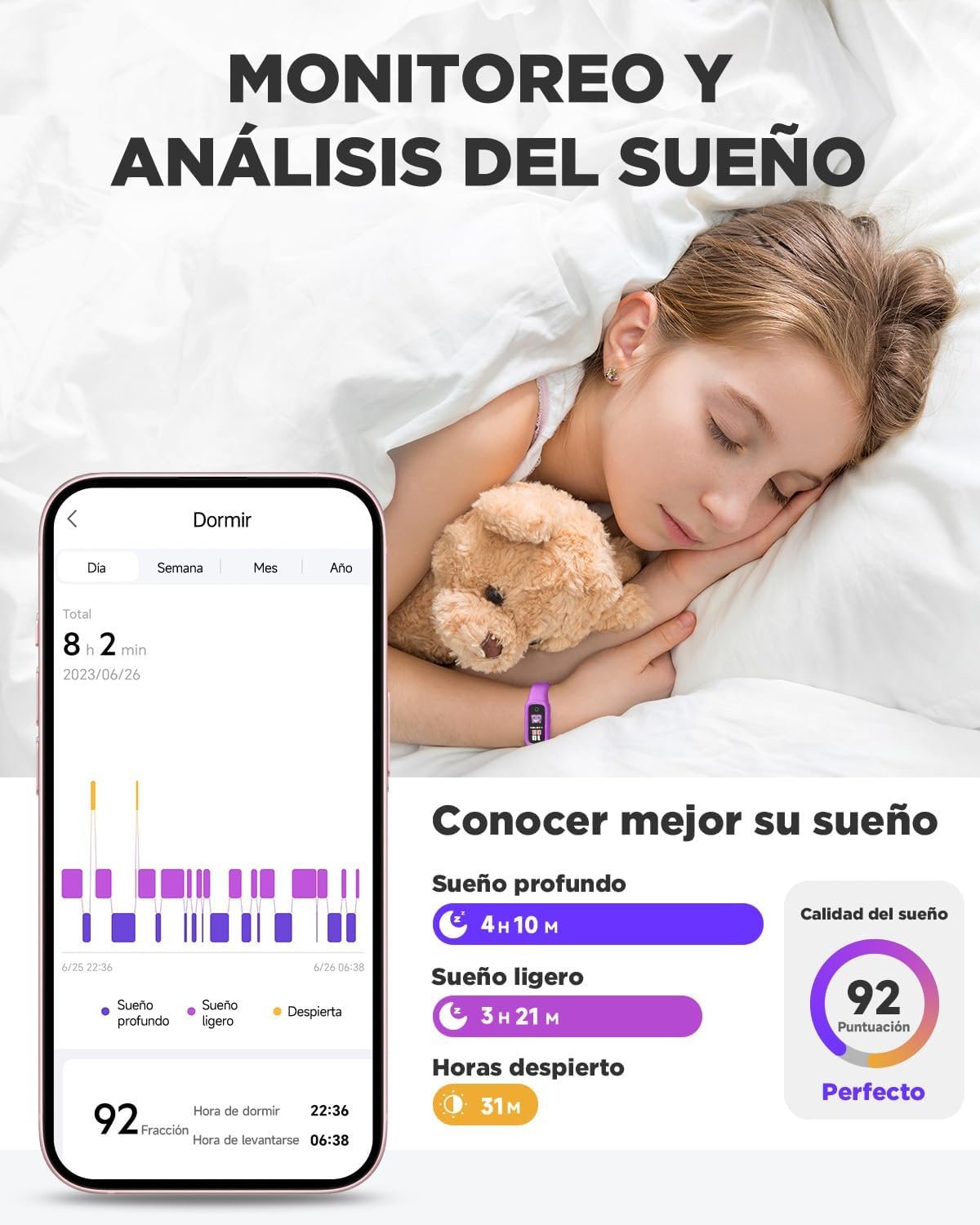 BIGGERFIVE Vigor 2 L Reloj Fitness para Niños y Niñas de 5 a 15 Años, Seguimiento de Actividad, Pulsómetro y Sueño, IP68 Resistente al Agua, Podómetro, Contador de Calorías, Morado Baterías : Se requieren 1 batería de polímero de litio. (incluido) Dimensiones del producto : 21 x 2 x 1 cm; 20 gramos Fabricante : BIGGERFIVE ASIN : B0DGGMFZLP Número de modelo del producto : BF200L País/Región de origen : China Actualizaciones de software garantizadas hasta : desconocido Reseñas de clientes: 4,0 4,0 de 5 estrellas (1440) var dpAcrHasRegisteredArcLinkClickAction; P.when(‘A’, ‘ready’).execute(function(A) { if (dpAcrHasRegisteredArcLinkClickAction!== true) { dpAcrHasRegisteredArcLinkClickAction = true; A.declarative( ‘acrLink-click-metrics’, ‘click’, { «allowLinkDefault»: true }, función (evento) { if (window.ue) { ue.count(«acrLinkClickCount», (ue.count(«acrLinkClickCount») || 0) + 1); P.when(‘A’, ‘cf’).execute(function(A) { A.declarative(‘acrStarsLink-click-metrics’, ‘click’, { «allowLinkDefault»: true }, function(event){ if(window.ue) { ue.count(«acrStarsLinkWithPopoverClickCount», (ue.count(«acrStarsLinkWithPopoverClickCount») || 0) + 1); } }); (SEGUIMIENTO DE ACTIVIDAD TODO EL DÍA) Realice un seguimiento de los pasos diarios de su hijo, las calorías quemadas y la distancia recorrida. Para mantener alta la motivación, los niños obtienen medallas virtuales cuando alcanzan objetivos de actividad específicos, lo que hace que el ejercicio sea divertido y atractivo. (Más de 10 MODOS DEPORTIVOS Y IMPERMEABLE IP68) Desde correr hasta baloncesto, fútbol y ciclismo, nuestro rastreador de actividad física para niños admite más de 10 modos deportivos diferentes. Ya sea que su hijo esté nadando (IP68 resistente al agua, seguro para la piscina pero no para el agua de mar) o duchándose, el rastreador BIGGERFIVE está diseñado para seguir su estilo de vida activo. (MONITORIO DE FRECUENCIA CARDÍACA Y SUEÑO) Manténgase informado sobre los datos de frecuencia cardíaca de su hijo las 24 horas del día, los 7 días de la semana. La función de monitorización del sueño de nuestro reloj para niños proporciona información sobre las diferentes etapas del sueño, como la duración del sueño profundo, y ofrece consejos útiles para mejorar la calidad del sueño. (BANDA CÓMODA Y BATERÍA DE LARGA DURACIÓN) Fabricado con una banda de silicona suave y liviana, este podómetro para niños está diseñado para brindar comodidad durante todo el día. Disfruta de una batería de larga duración de hasta 7 días con una sola carga, con un tiempo de recarga de solo 2 horas. (REGALO PERFECTO PARA UNA OCASIÓN ESPECIAL) Bellamente empaquetado, el reloj deportivo para niños es un regalo ideal para cumpleaños, Navidad o cualquier ocasión especial. Combinado con la aplicación BIGGERFIVE, puede explorar funciones adicionales y acceder a informes detallados de actividad y salud, lo que la convierte en una herramienta fantástica tanto para niños como para padres.