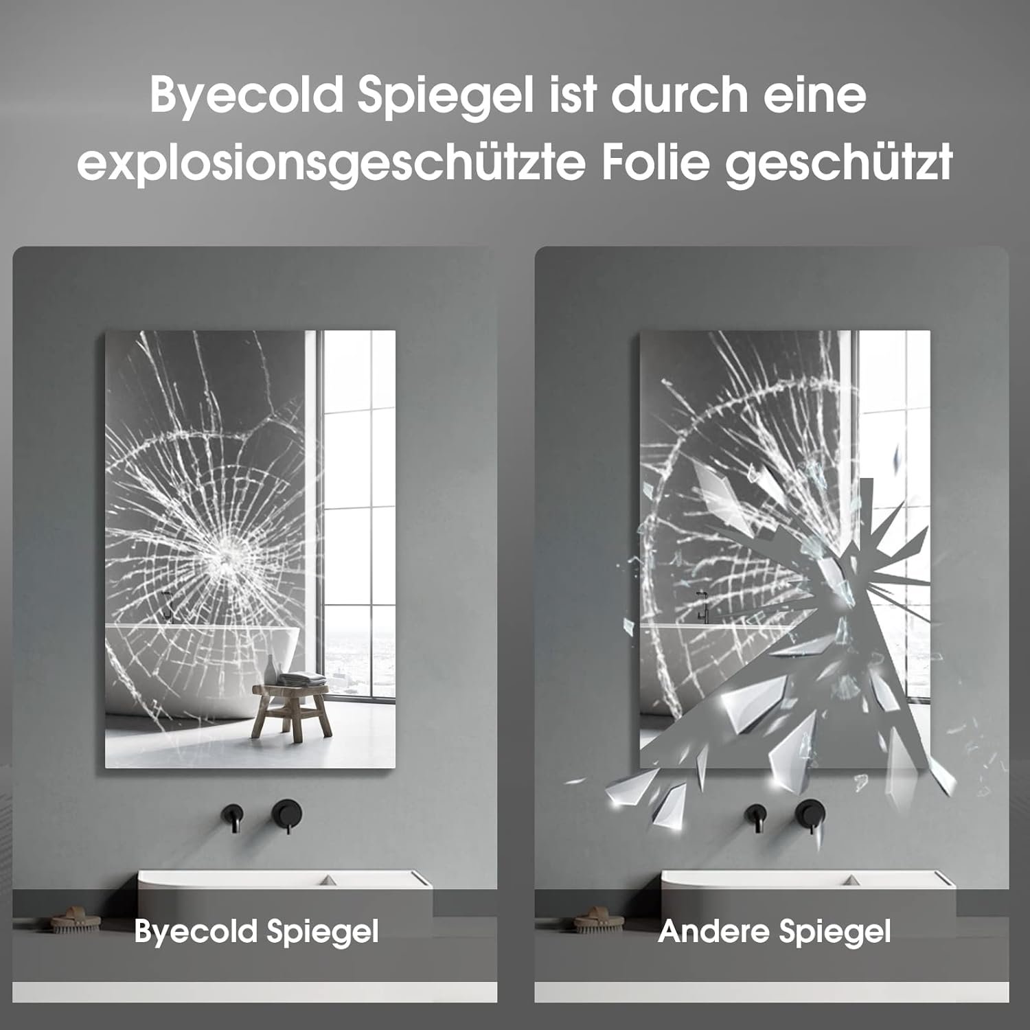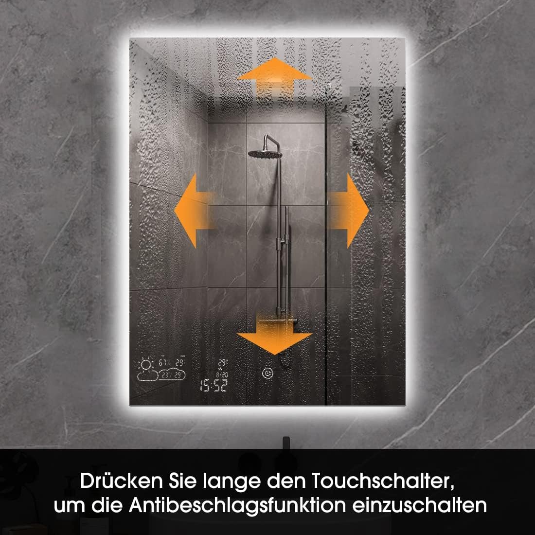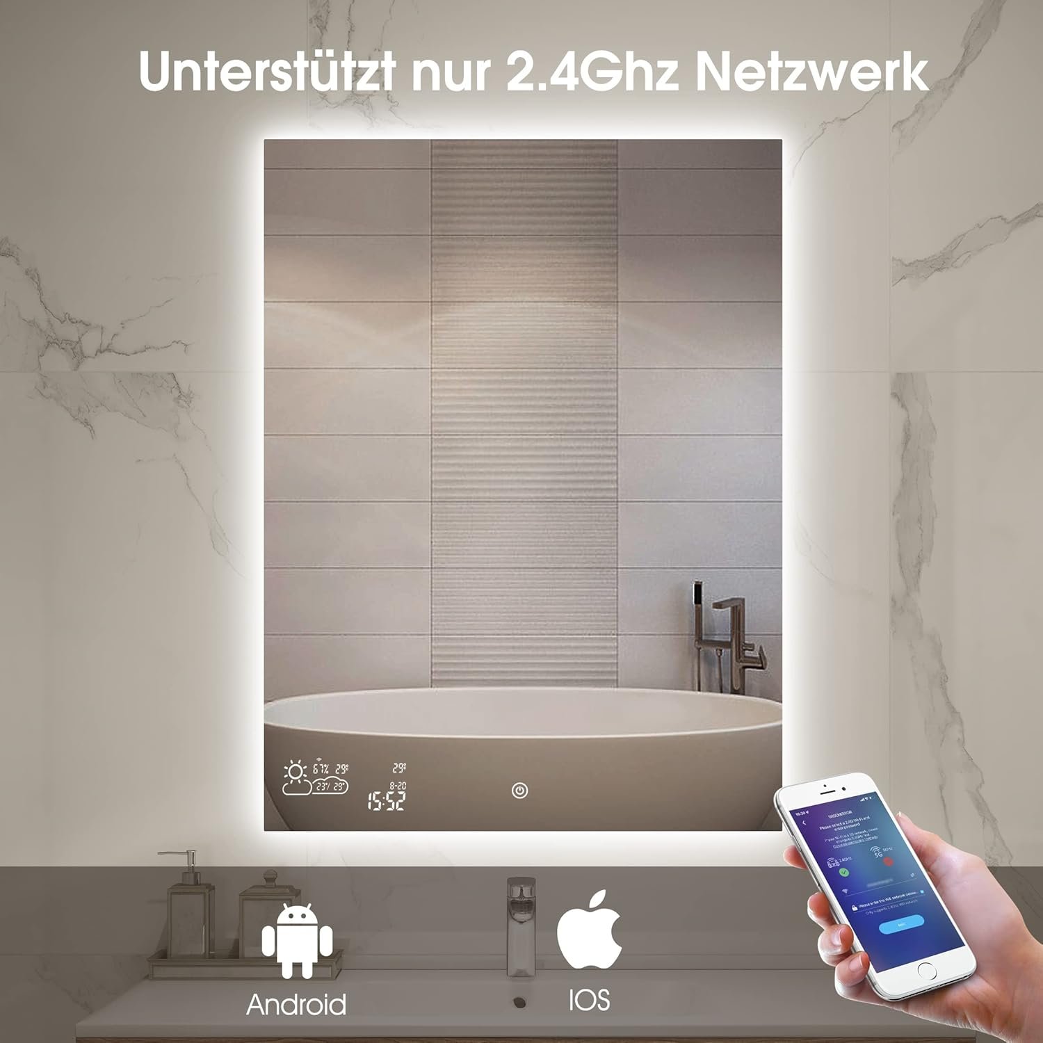 byecold Espejo de Baño LED Antivaho, 60 x 80 cm, Espejo de Pared con Interruptor Táctil, Estación Meteorológica WiFi y Fecha, Espejo Inteligente, Vertical