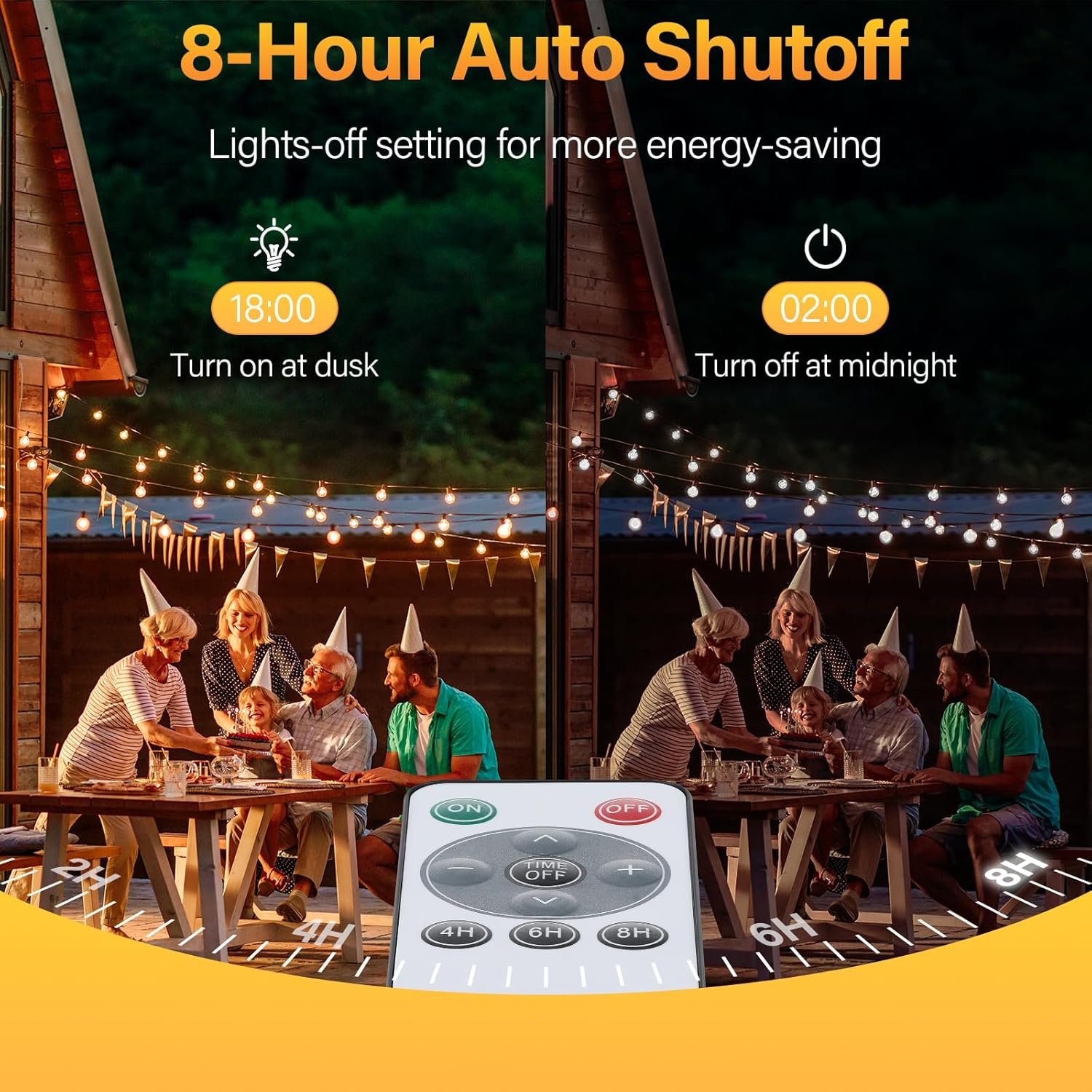 【Fácil de instalar y usar】 No se requiere cableado para la instalación. El funcionamiento es sencillo con el botón de encendido/apagado. Las luces del patio se encienden y apagan automáticamente. Puedes colgar estas luces decorativas en tu patio, cerca, jardín o porche para crear un ambiente agradable en una tarde tranquila.