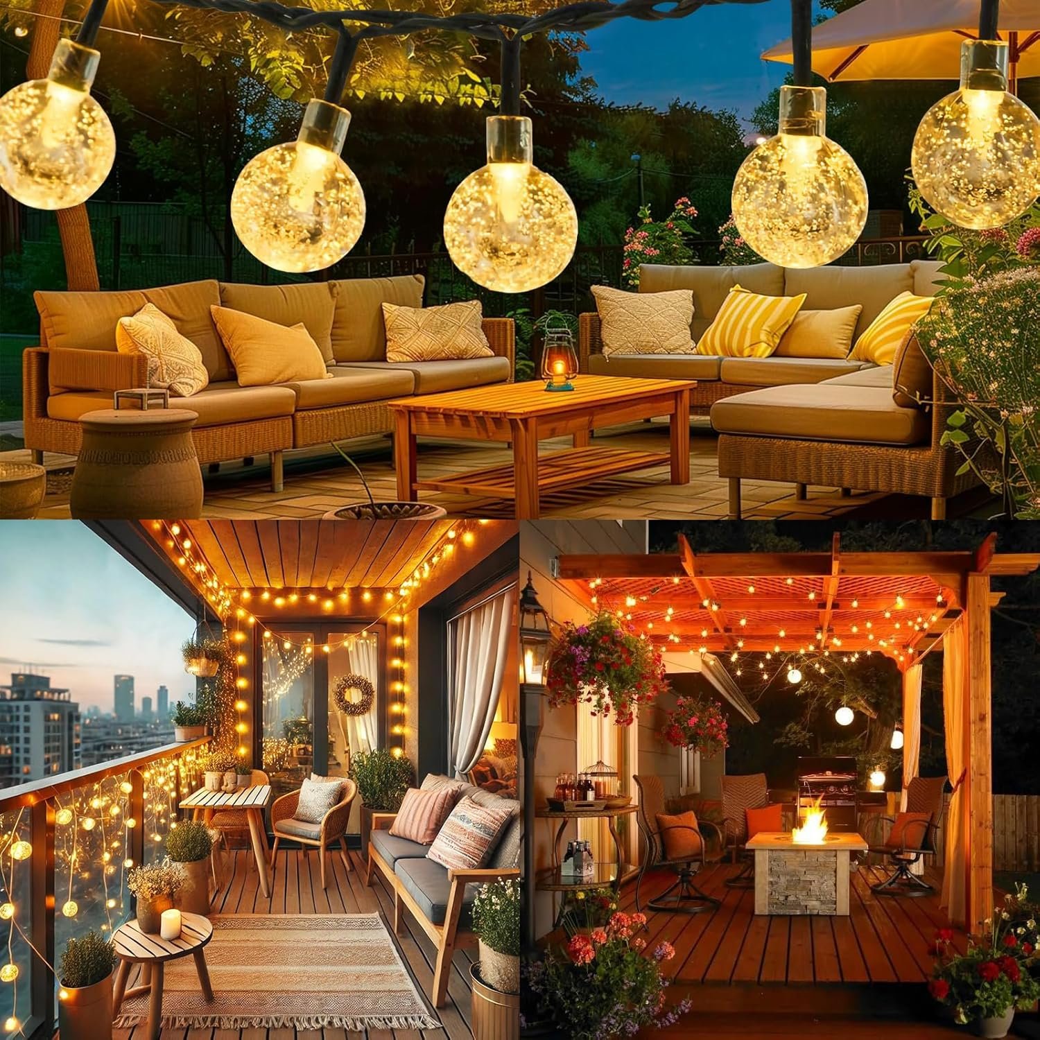 【IP65 resistente al agua y duradero】La cadena de luces de bolas de cristal está hecha de materiales de alta calidad y tiene un diseño sellado, lo que las hace resistentes a diversas condiciones climáticas y perfectas para exteriores. Ya sea que haga sol, llueva o haga viento, las luces de cadena impermeables para exteriores funcionarán normalmente