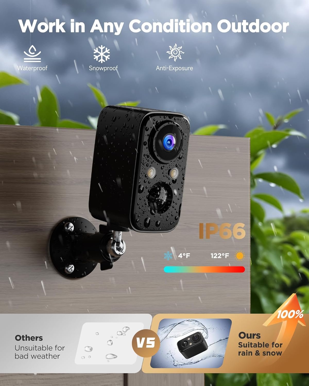 【Cámara exterior multifuncional】 Alarma de luz, sonido y resistencia al agua IP66, lo que garantiza que siempre pueda realizar un seguimiento de la situación de su hogar y proteger la seguridad de su propiedad. Si tiene algún problema durante el uso, no dude en contactarnos. Le proporcionaremos un servicio satisfactorio.