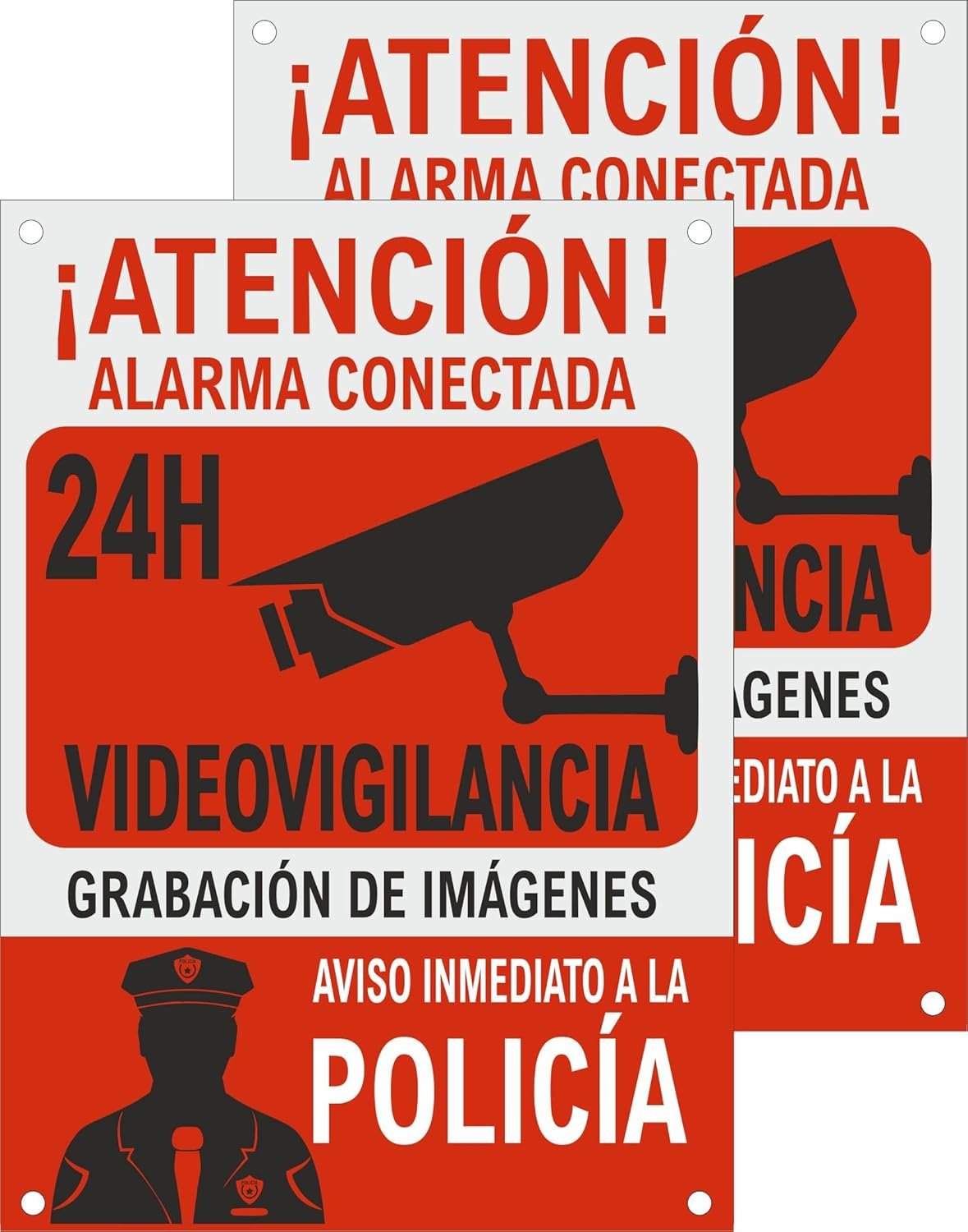 Fotos: Cartel de Videovigilancia Alarma Conectada – Placa de Alarma – Aviso Policial – Medidas A4 21 x 30 cm – PVC Rígido 0,7 mm – Tintas y Material Resistente – Interior y Exterior – Zona de Videovigilancia