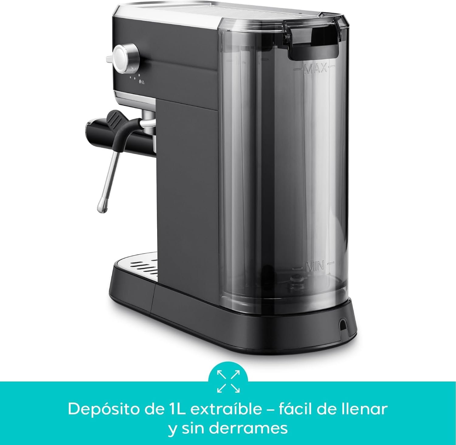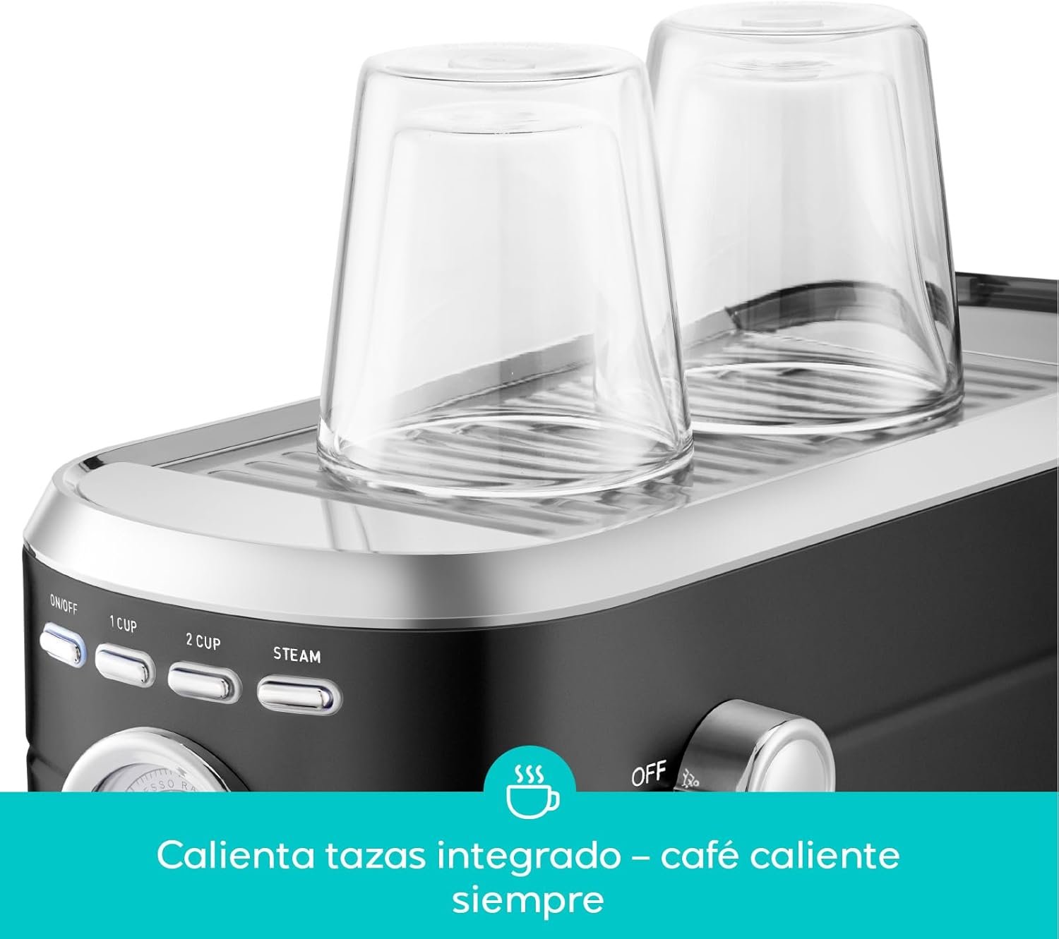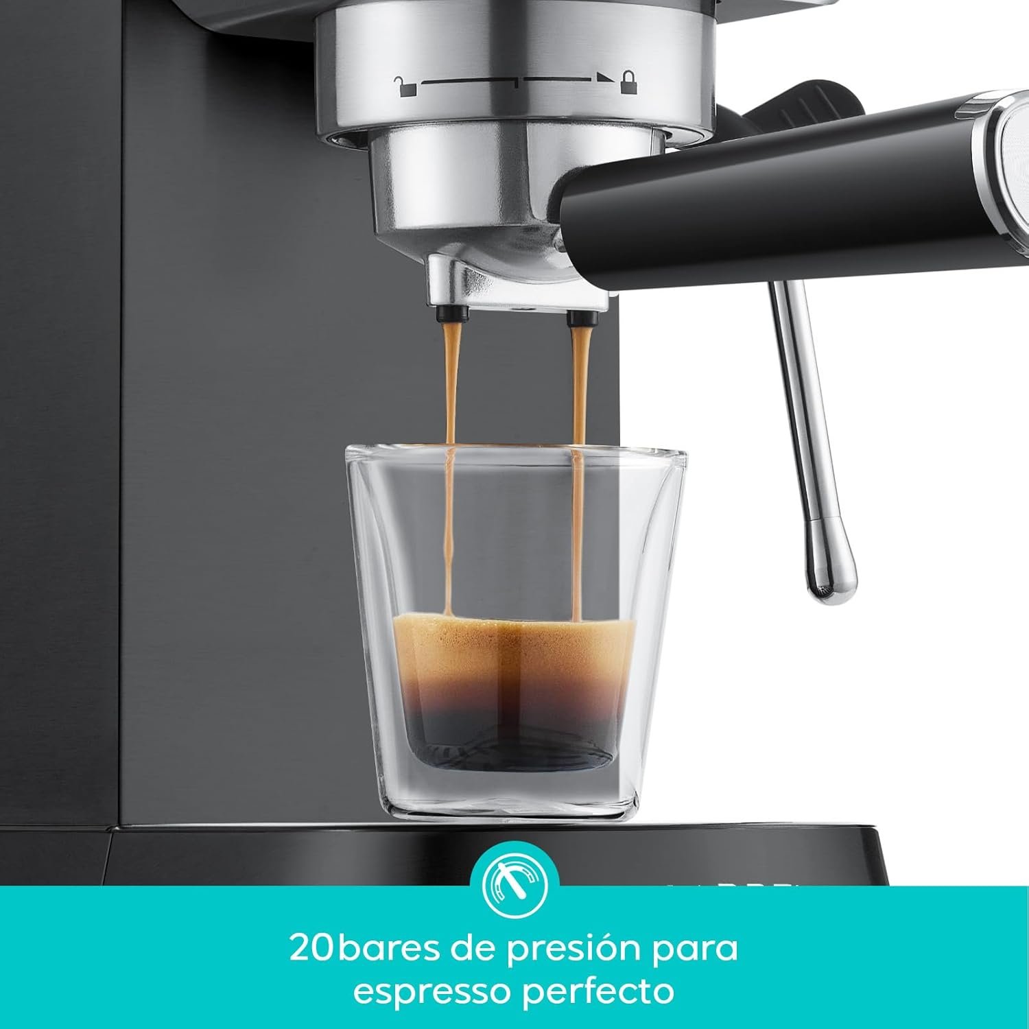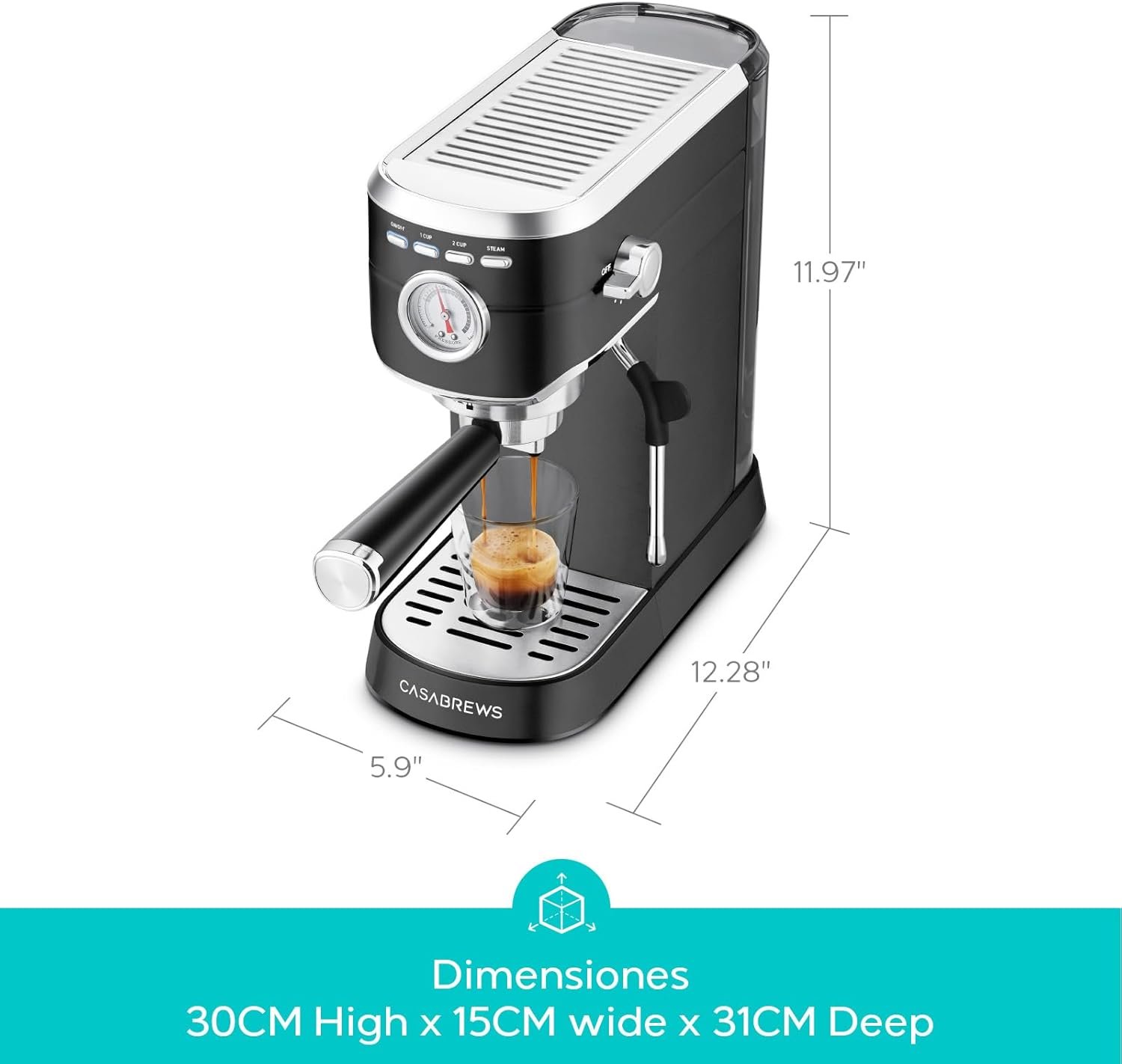 - 7% CASABREWS Cafetera Espresso y Capuchino, Café Espresso Manual 20 Barras con Manómetro, Cafetera Barista Café Molido, Depósito Extraíble 1L, Portafiltro con Doble Salida y 2