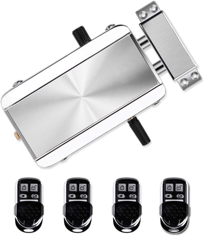 Cerradura electrónica inalámbrica, sistema de control de entrada sin llave antirrobo para el hogar con 4 controles remotos para el hogar/hotel/apartamento (plateado)