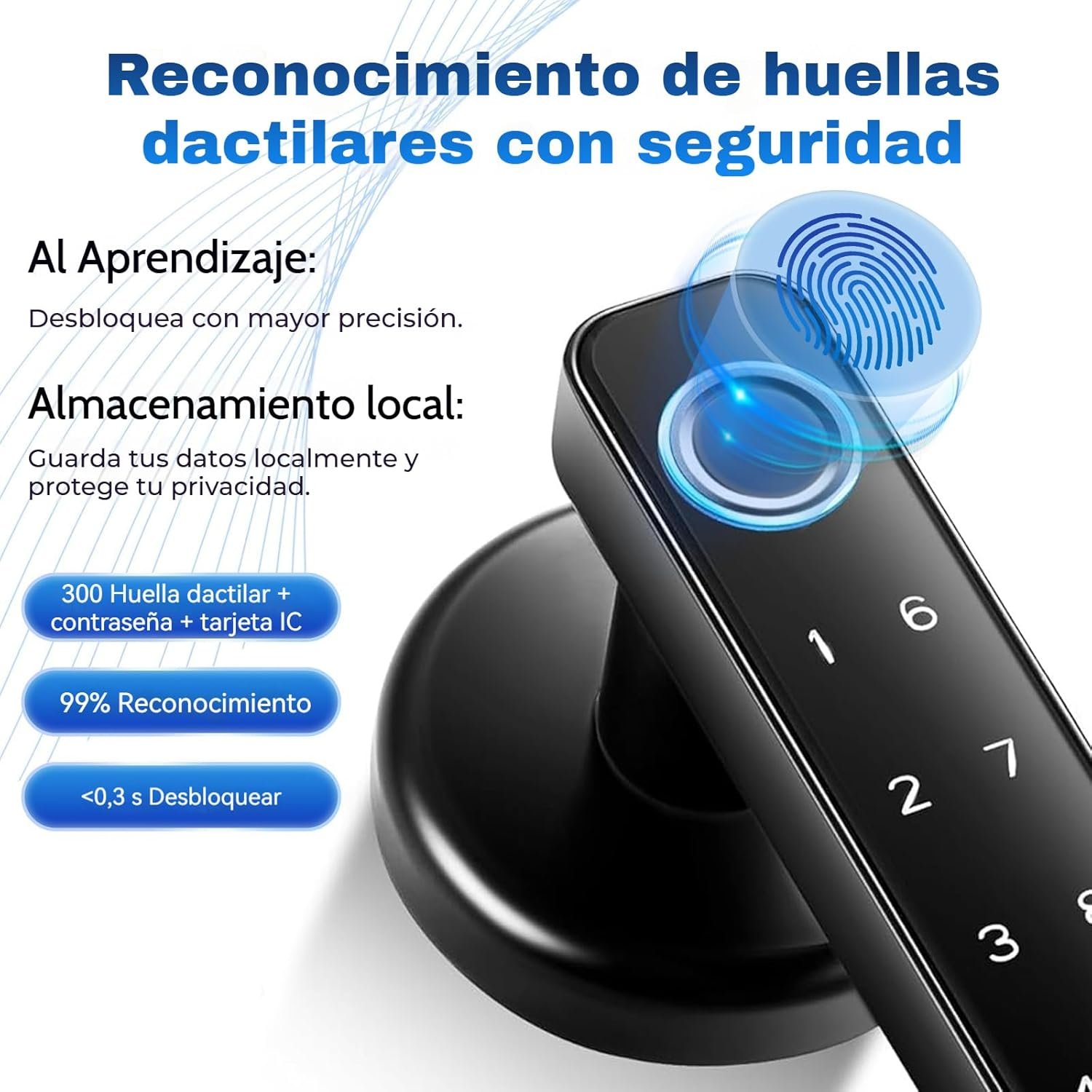 Cerradura inteligente con huella digital, cerradura electrónica 6 en 1, aplicación Tuya, tarjeta IC, NFC, huella digital, contraseña digital, llave mecánica