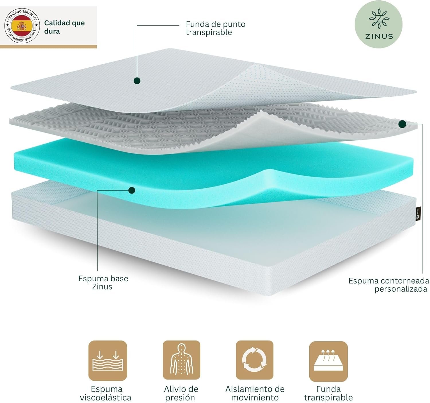COMODIDAD ENVOLVENTE: Este colchón ortopédico de firmeza media combina 7 cm de espuma de alta densidad y 4 cm de viscoelástica para ofrecer el equilibrio ideal entre soporte firme y comodidad envolvente.