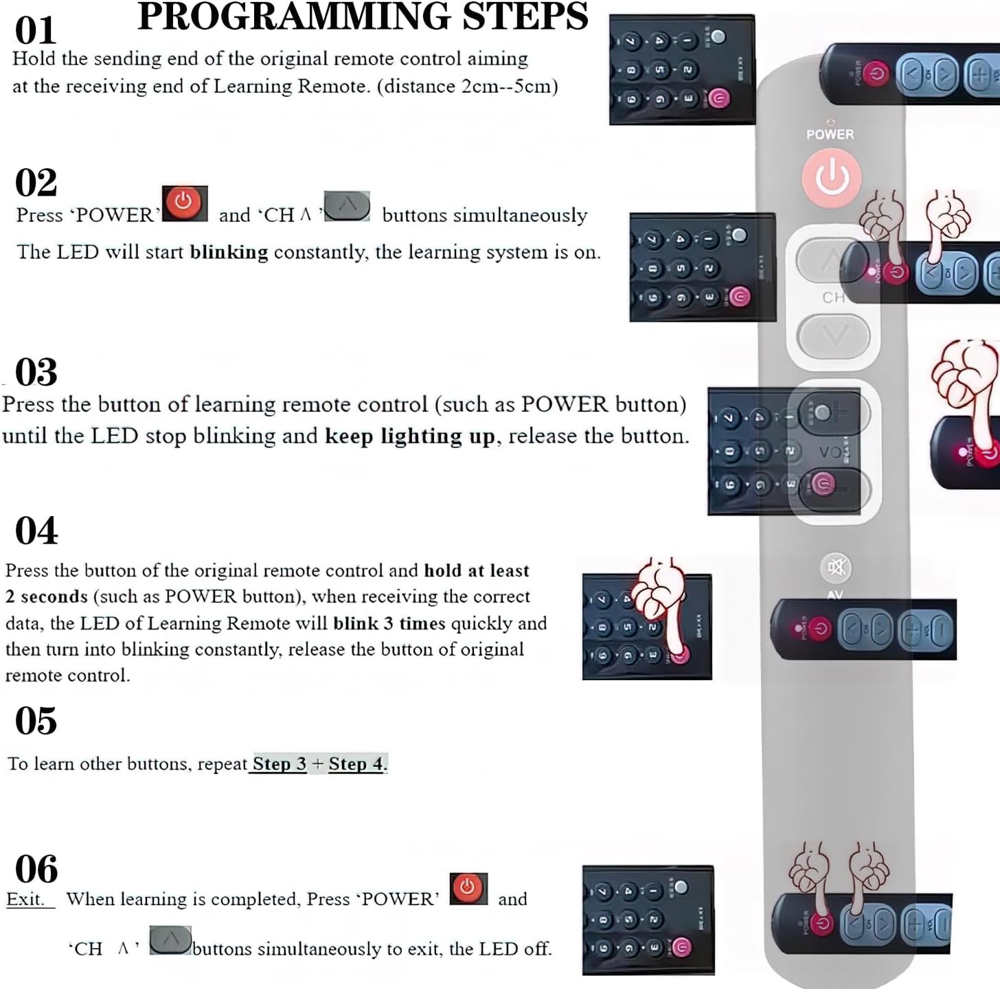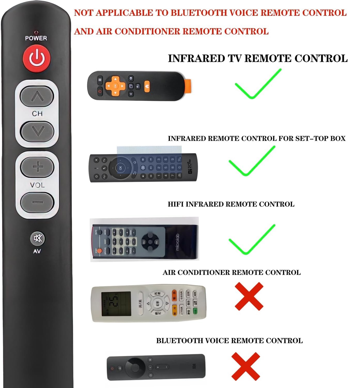 Fotos: Control remoto de aprendizaje 6 botones Botones grandes Personas mayores Ancianos Control remoto de TV programable universal Compatible con dispositivos IR TV STB DVD HiFi (2 piezas)