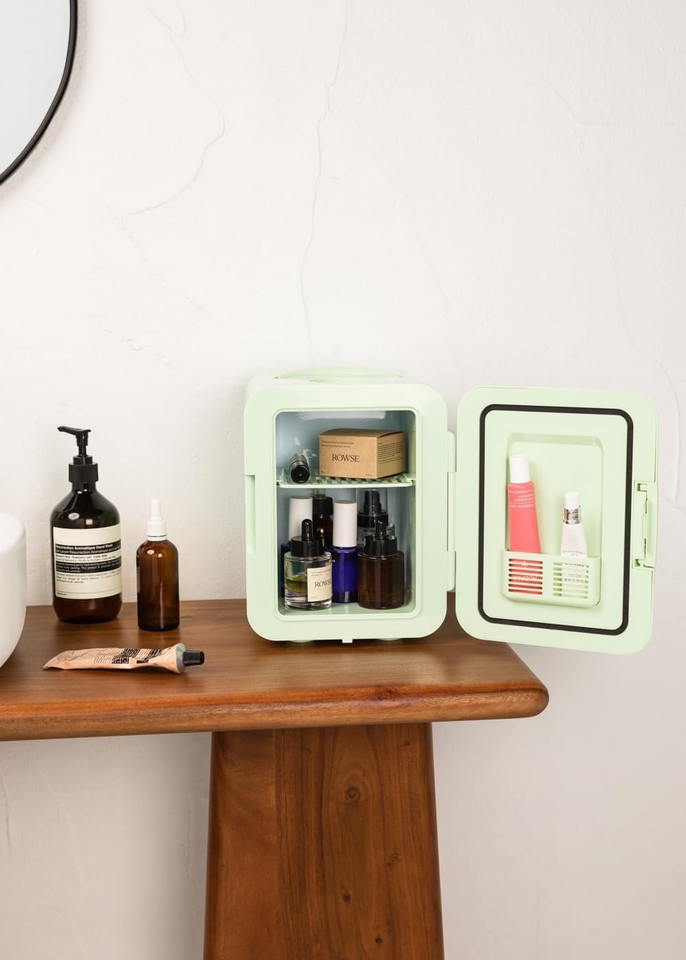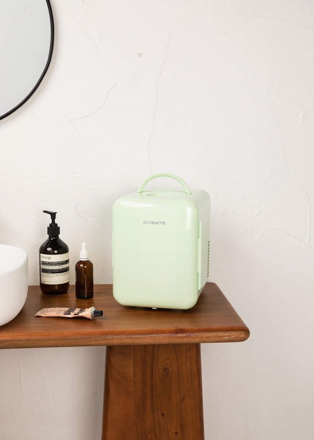 CREATE / FRIDGE MINI BOX/Mini Nevera para Cosméticos Verde Pastel/Diseño Retro, Función Frío y Calor, Capacidad 4L, Fácil de Transportar, 48W