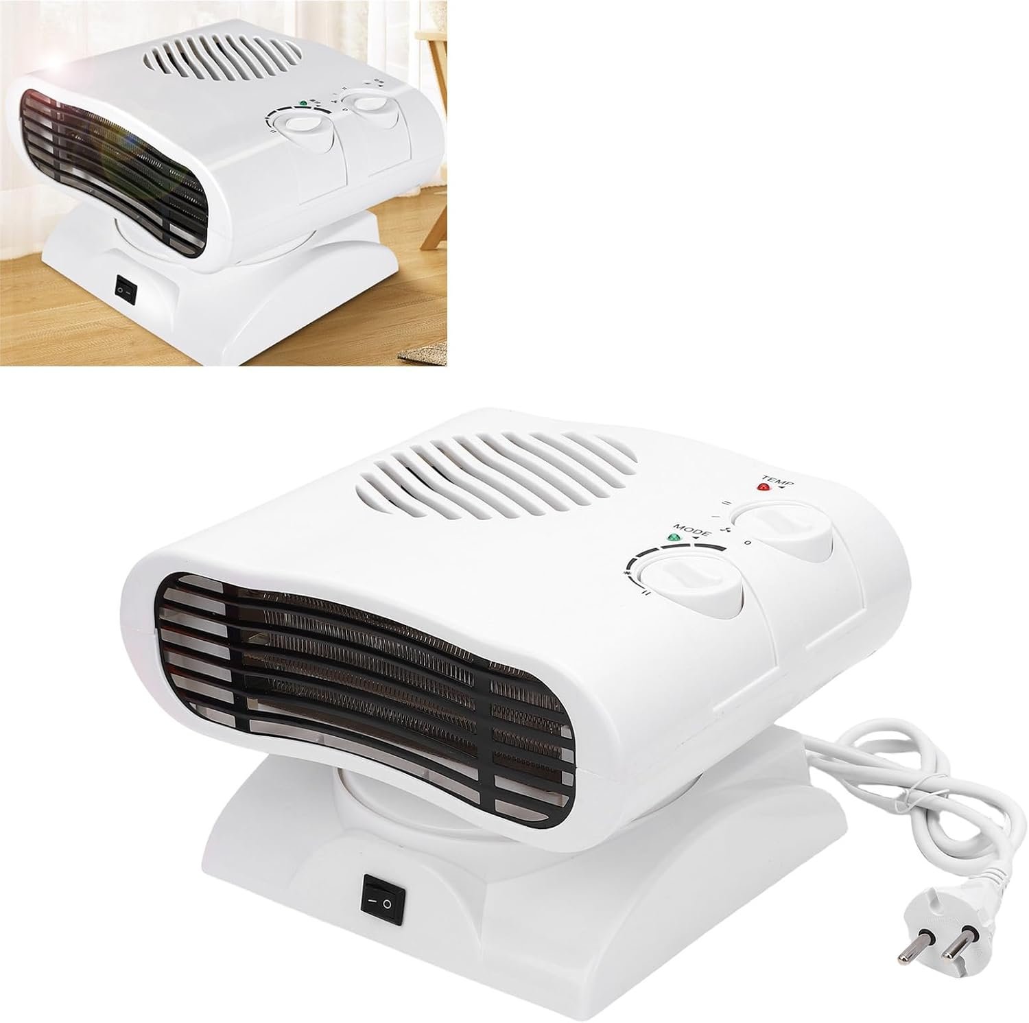Dpofirs Calentador eléctrico, calentador de espacio de 1500 W y combinación de refrigerador oscilante automático, ventilador de escritorio pequeño personal para dormitorio, oficina, uso