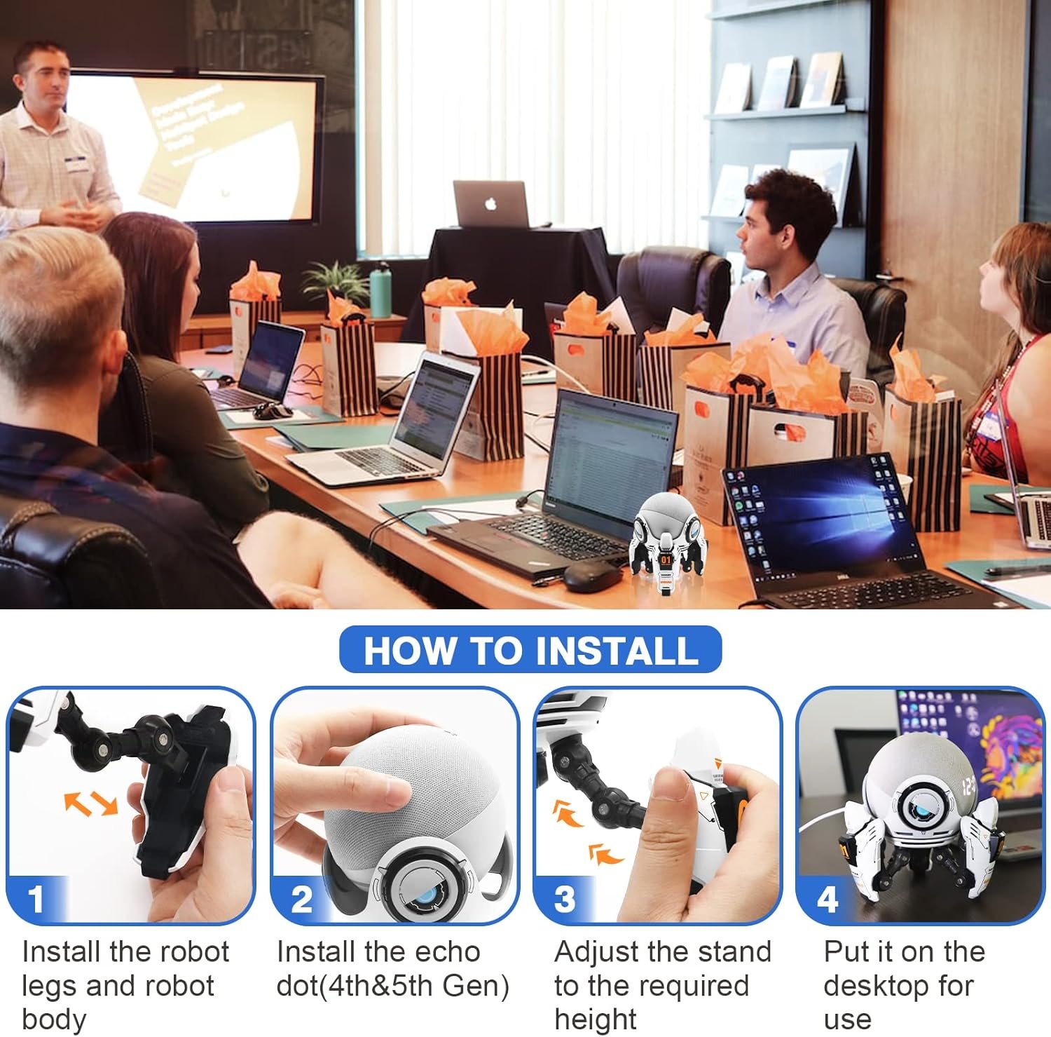Echo Stand (4e/5.a generación), compatible con HomePod Mini Stand, soporte para altavoz de escritorio Alexa con forma de robot, adecuado para cocina, baño y dormitorio