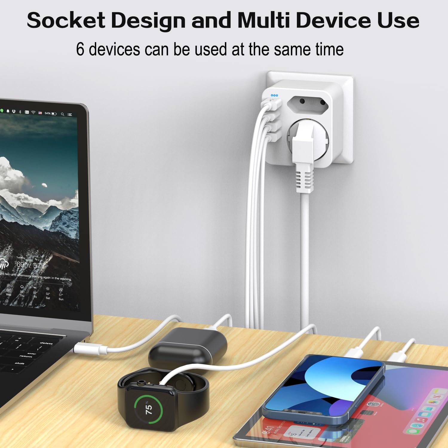 【Designstruktur】Des outlet la mejor utilidad para múltiples dispositivos. Aspecto elegante con una huella muy pequeña. El material plástico de alta calidad se hace más liviano. Puedes compartir la misma regleta con amigos y familiares cuando visiten tu casa. La regleta con USB casi no ocupa espacio.