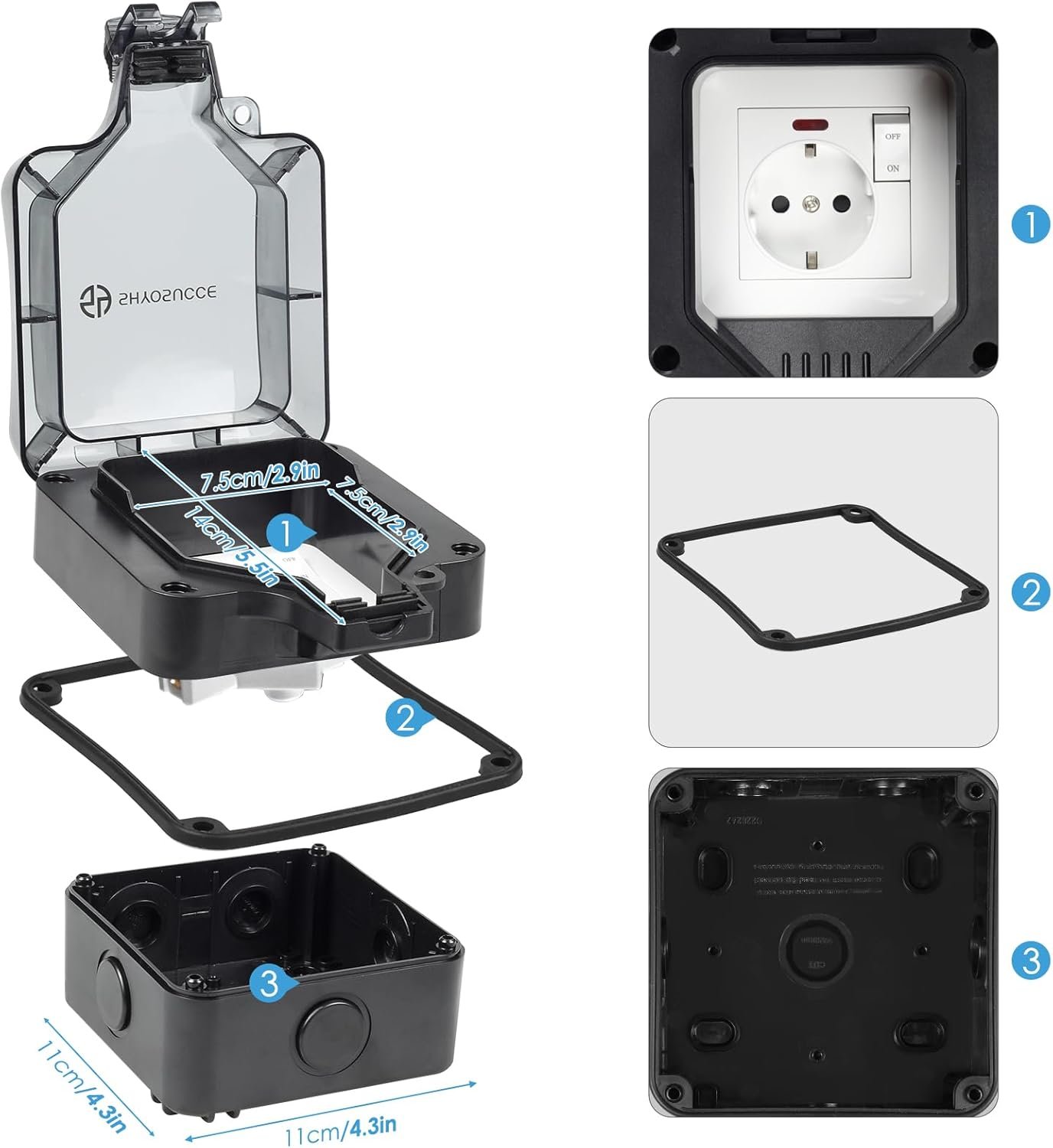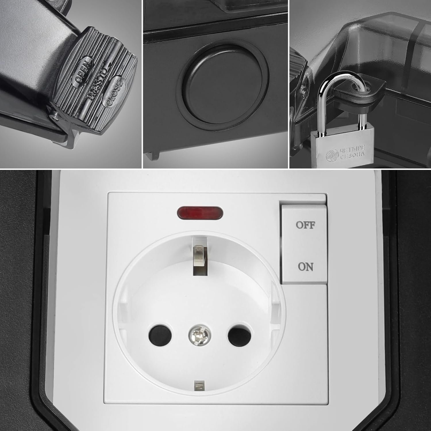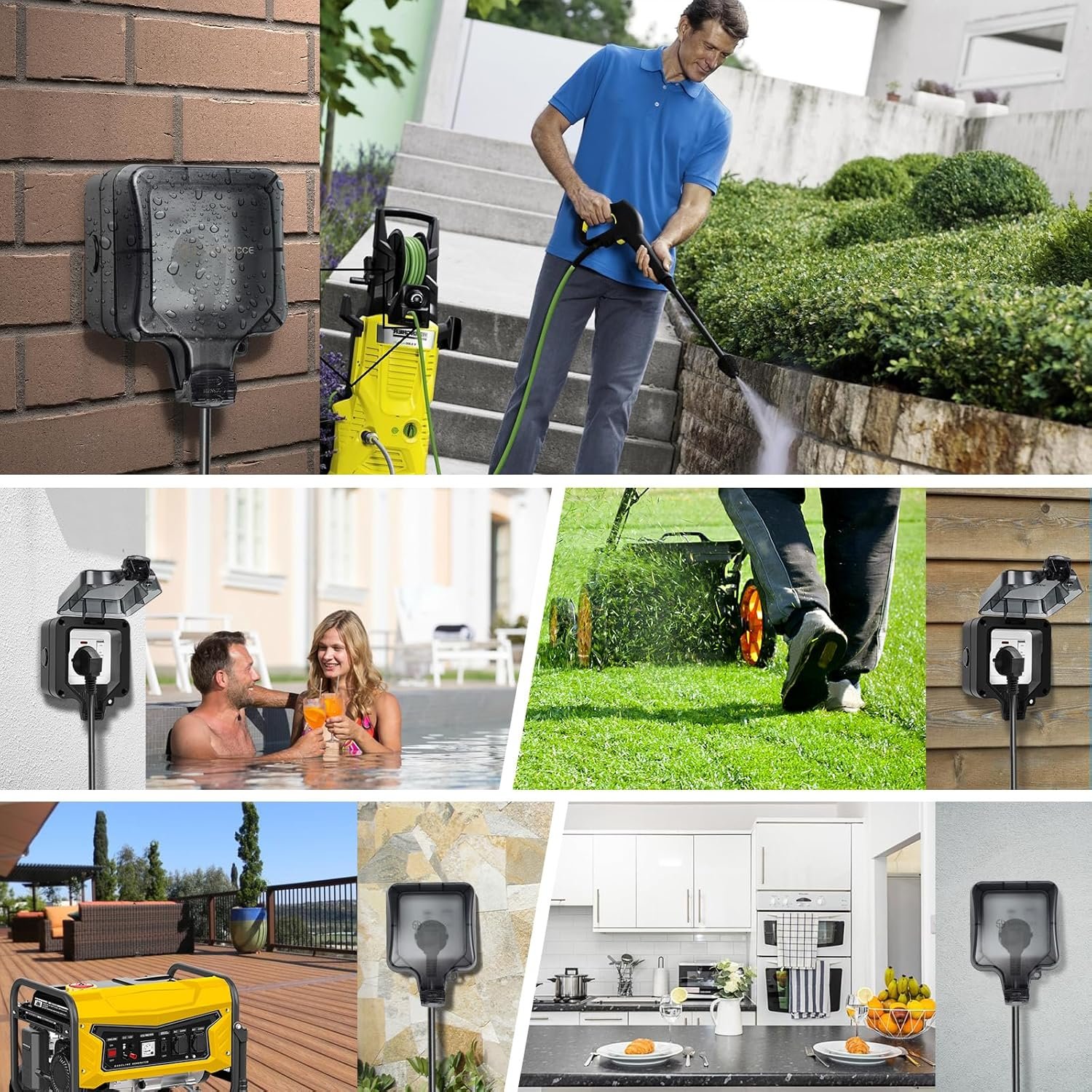 Enchufe exterior con interruptor, conector de cable y tapa abatible, IP66 impermeable, enchufe de pared a prueba de polvo, enchufe exterior para cocina, baño, garaje, piscina y