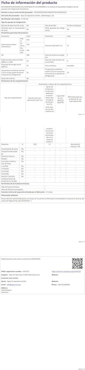 Número de modelo del producto : JY-CS-15L