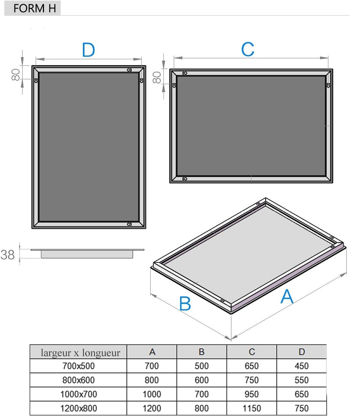 Tamaño / mm (L * H): 800×600/1000×700/1200x800mm Forma: Rectángulo Estrella de cristal: 5 mm Dieta: 36w 12V 5O-60Hz Función antivaho: Tener El número de diodos LED: para 1 metro 120 Calificación energética: A ++, el bajo consumo de energía protege el medio ambiente!