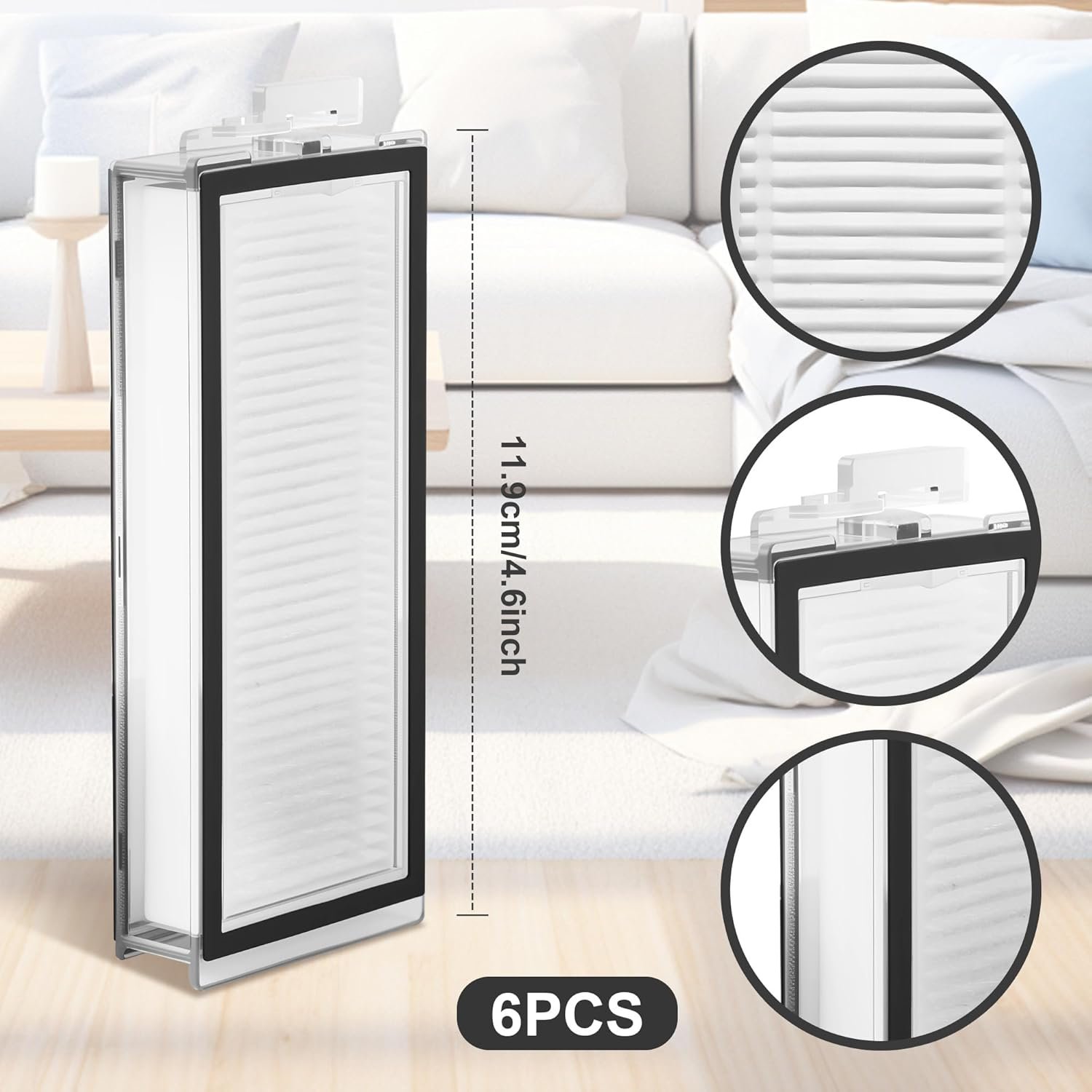 Función de filtrado eficiente: utiliza material filtrante multicapa que puede interceptar profundamente más del 99 % del pelo de las mascotas y el polvo del piso, lo que garantiza que el aire interior esté limpio y fresco después de la limpieza y proporciona un potente soporte de filtrado para los robots aspiradores Roborock Q7.