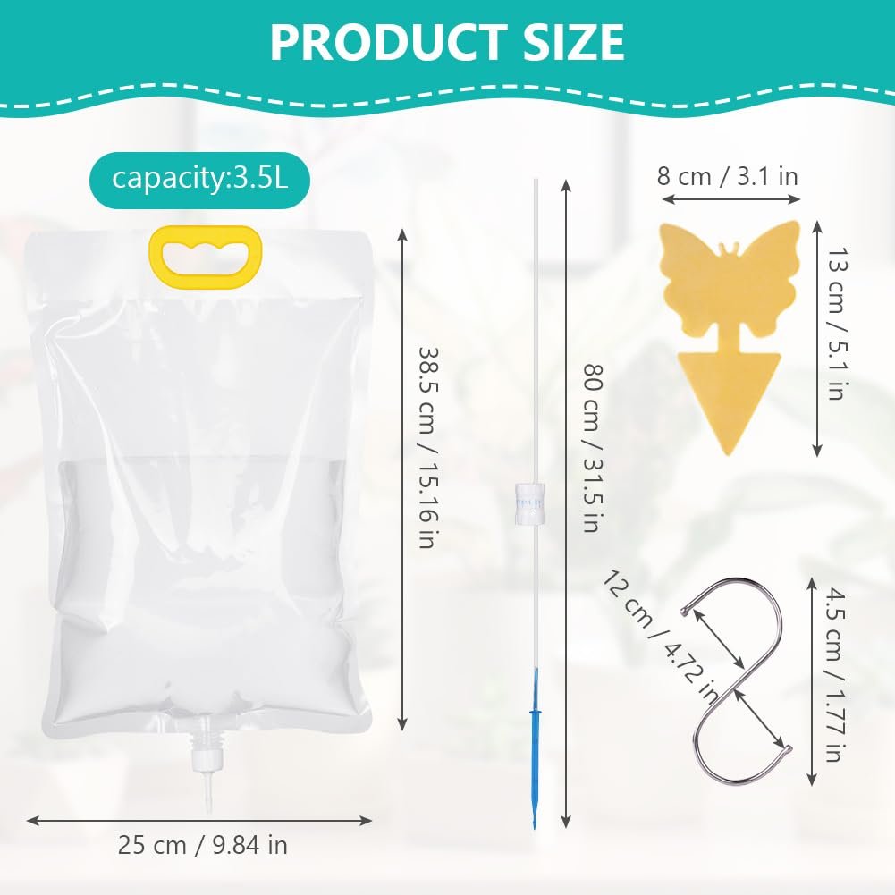 ␞🍃 【Fácil de Usar】 Recibirá 4 bolsas de riego de gran capacidad de 3500 ml * 4 tablas adhesivas repelentes de insectos * 4 + ganchos * 4. Solo necesita llenar la bolsa intravenosa con agua/solución nutritiva, luego colgarla en alto, luego colocar la flecha de goteo profesional (que puede proteger las raíces contra daños) en el suelo, ajustar el interruptor de la válvula para controlar el flujo de agua y estará listo para comenzar a trabajar.
