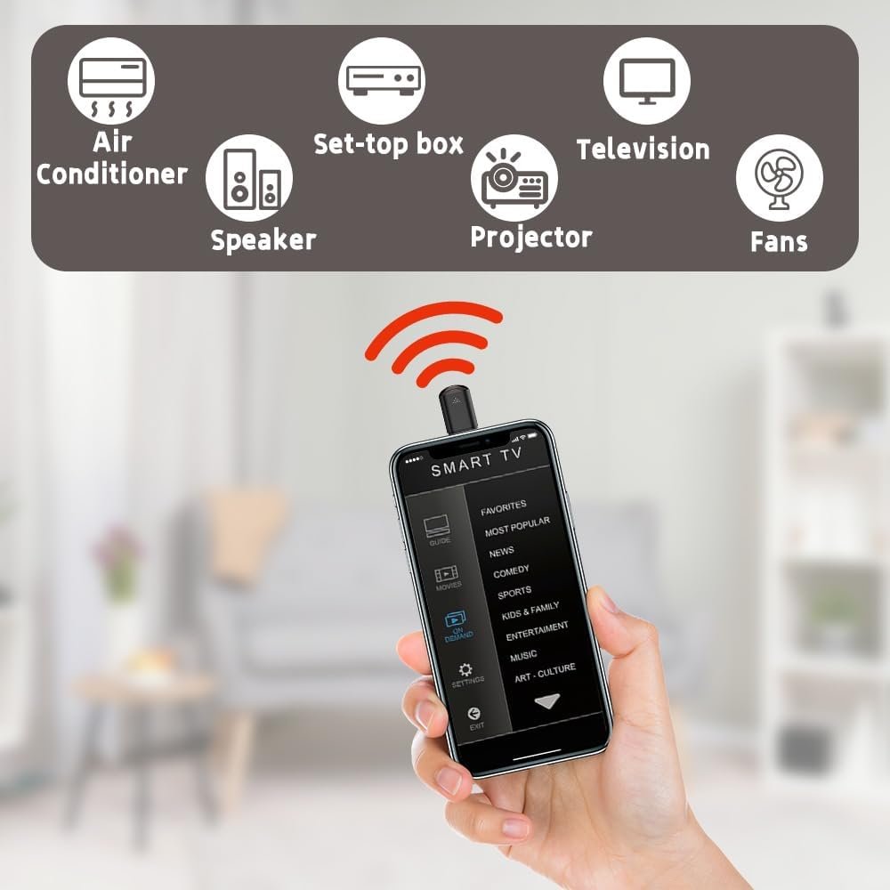 (Amplia aplicación) El adaptador de controlador de teléfono puede controlar varios electrodomésticos, proyectores, decodificadores, televisores, aires acondicionados, etc. Convierta su teléfono móvil en el centro de control de su hogar inteligente. Con el adaptador de controlador de teléfono, ya no necesitará almacenar varios controles remotos, lo que hará que el entorno de su hogar sea más limpio y cómodo.