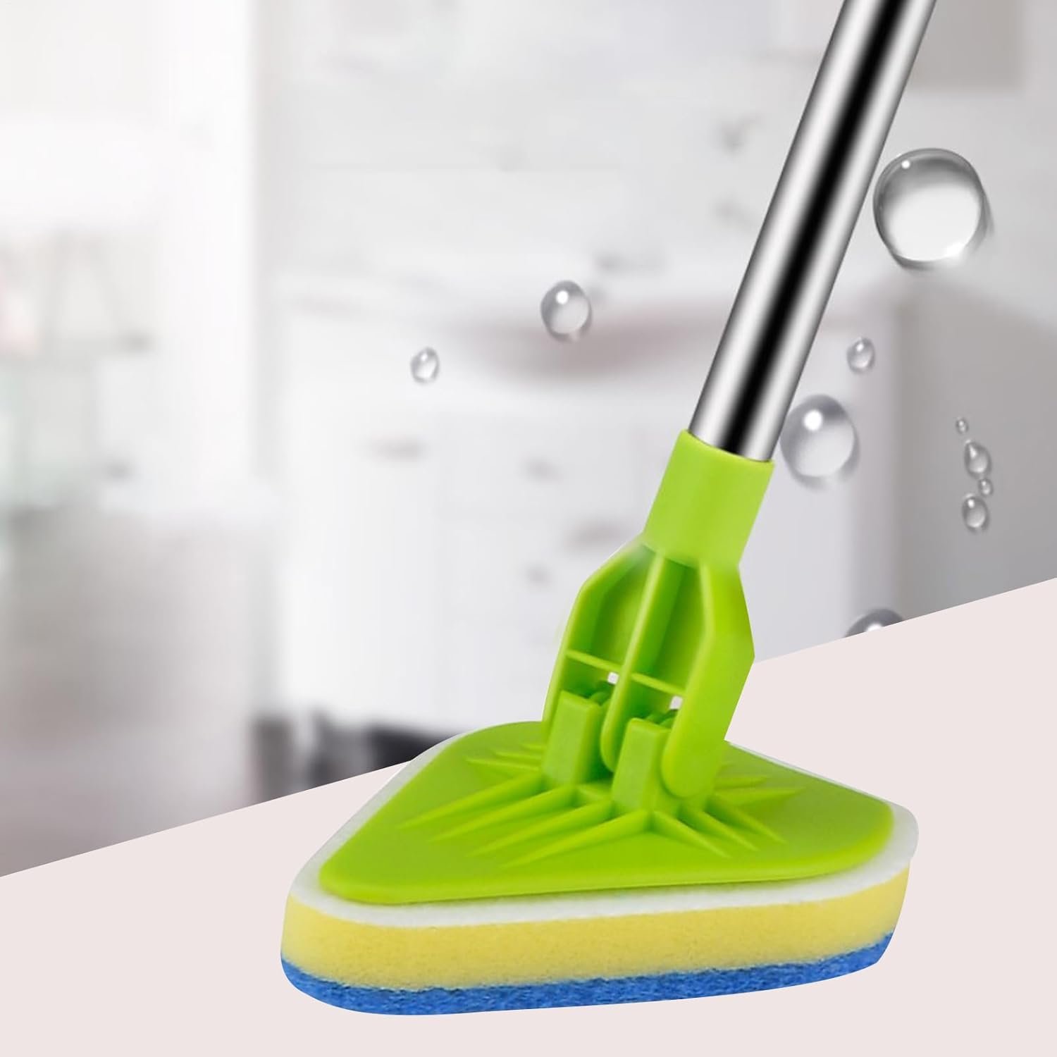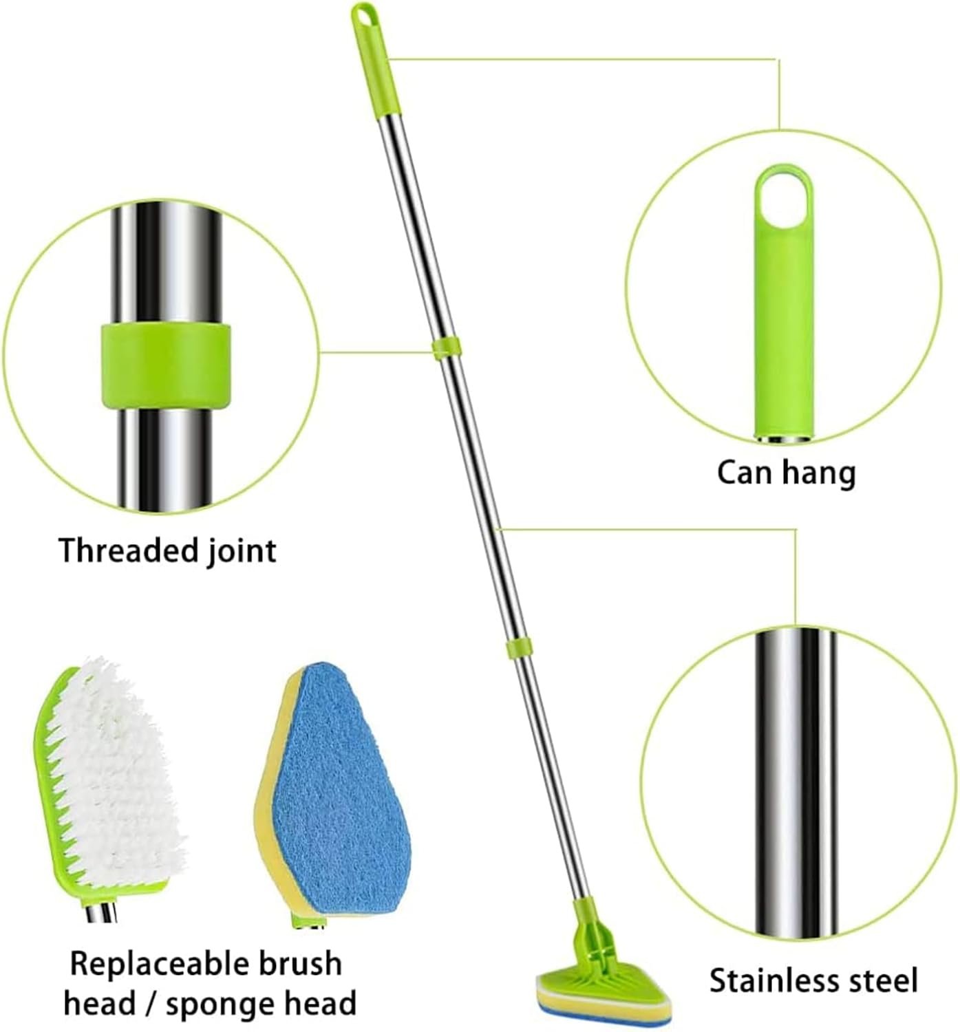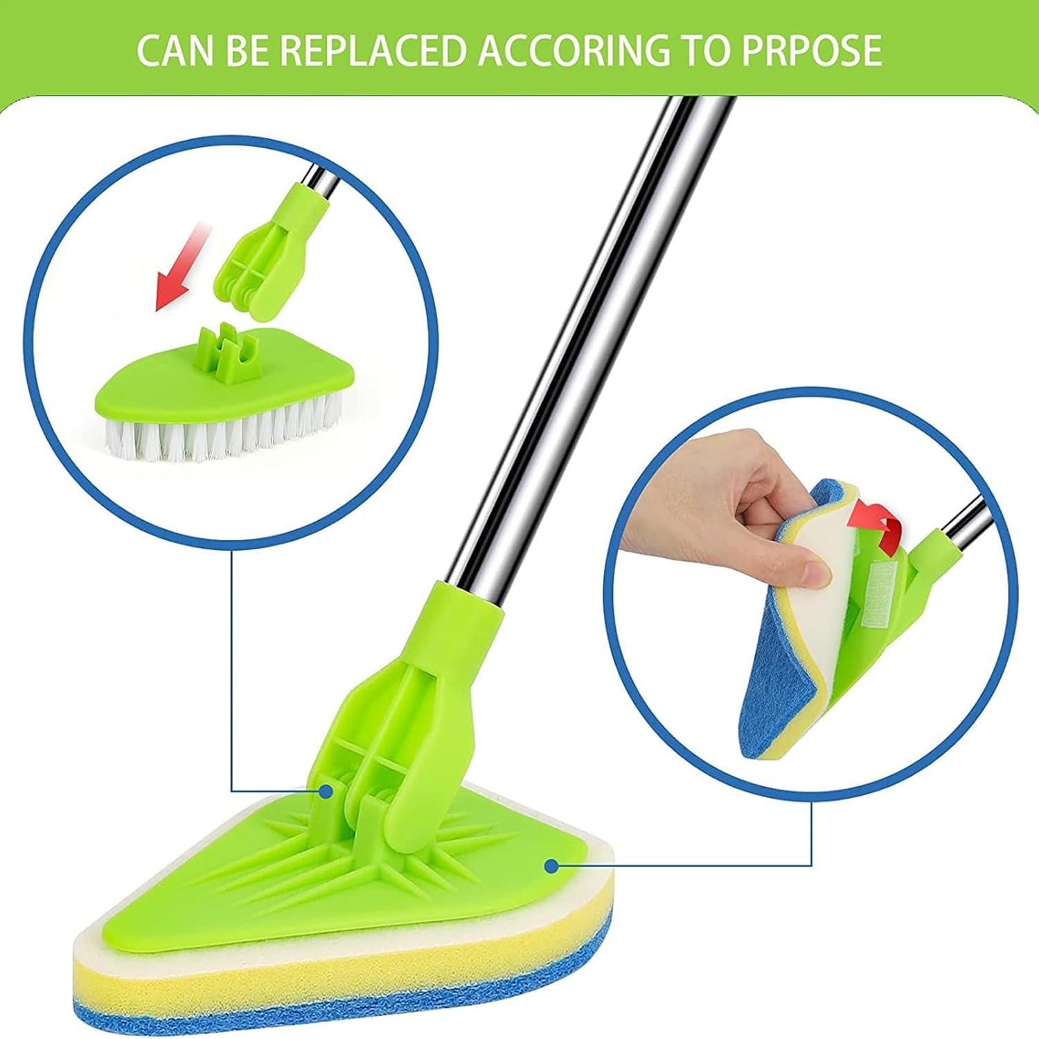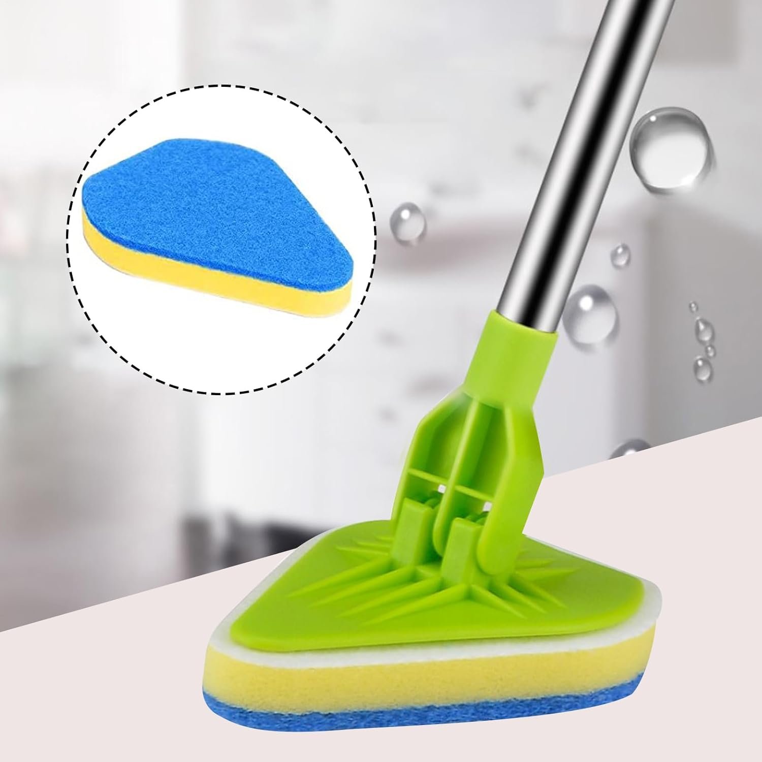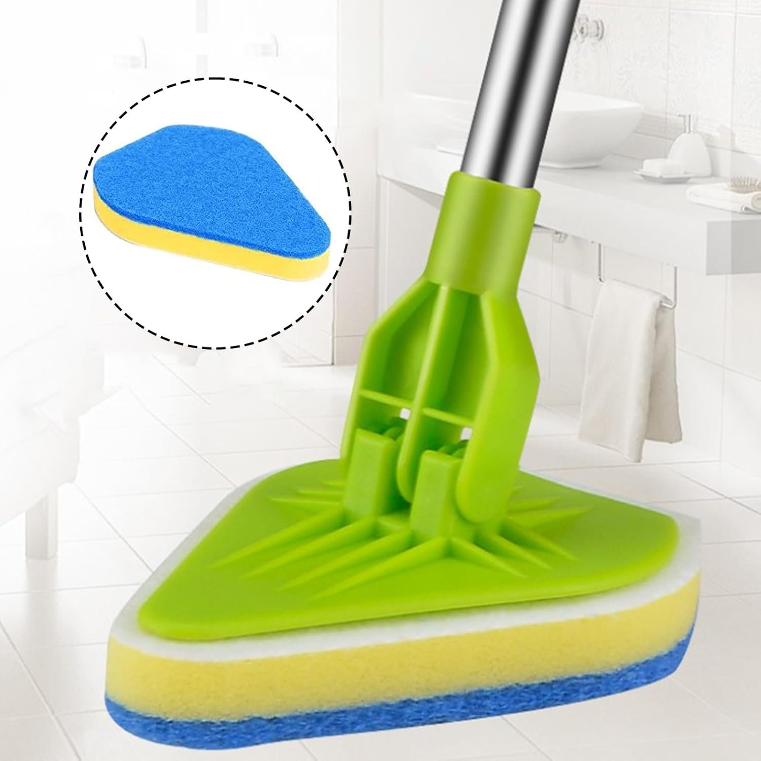 Fregadora de baño, fregadora para limpieza, limpiador de azulejos extensible 2 en 1 con cabezal ajustable, esponja de cepillo limpio extraíble para zócalos, baño, bañera o pared del piso