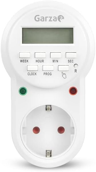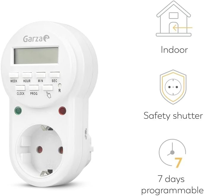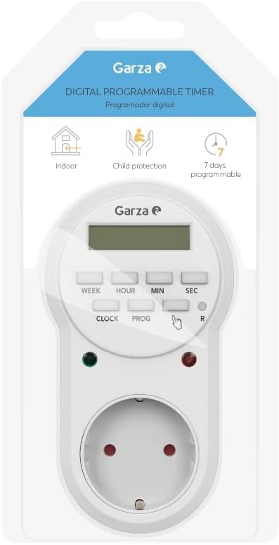 Garza – Programador Digital Temporizador Enchufe, Programable 24 horas/7 días, 8 programas, Protección infantil