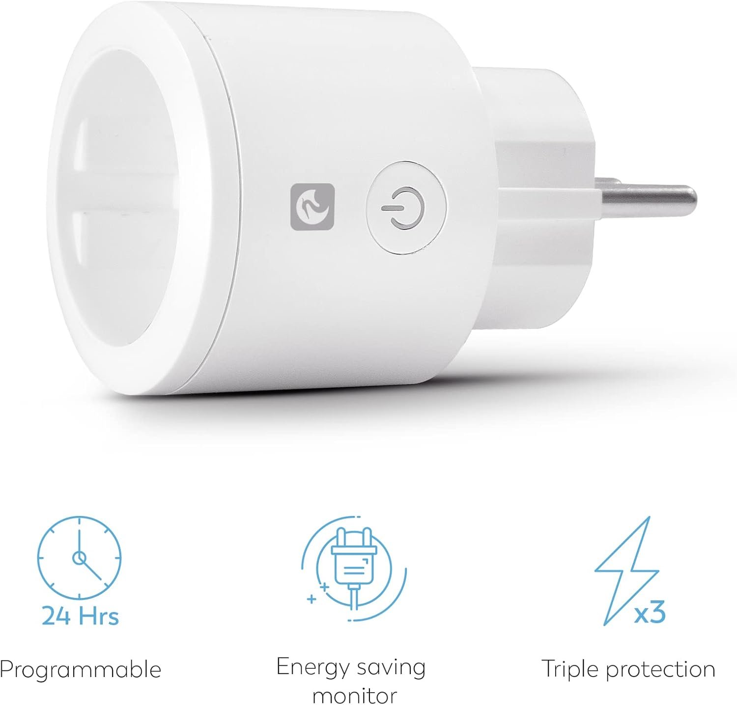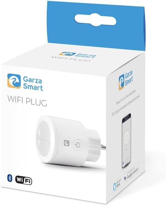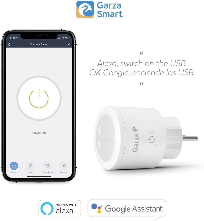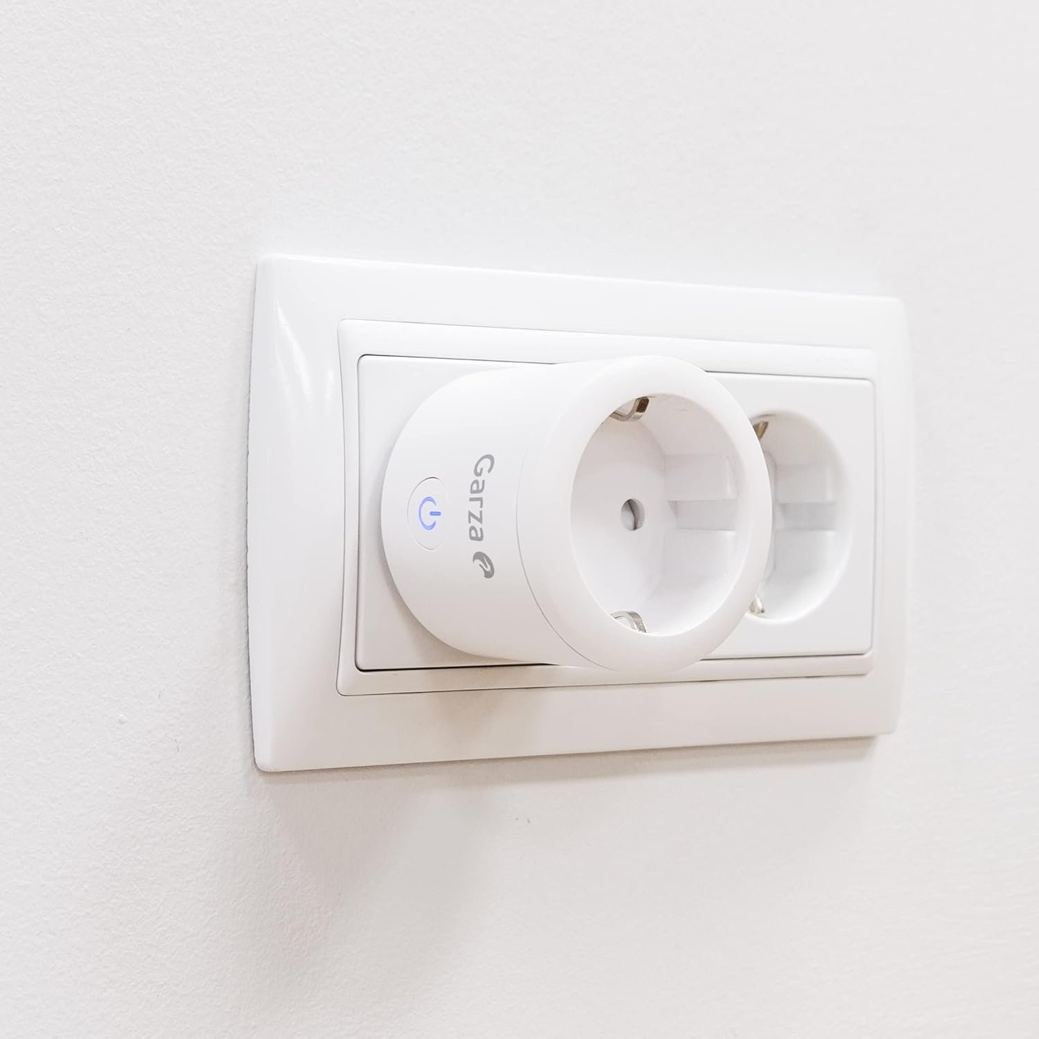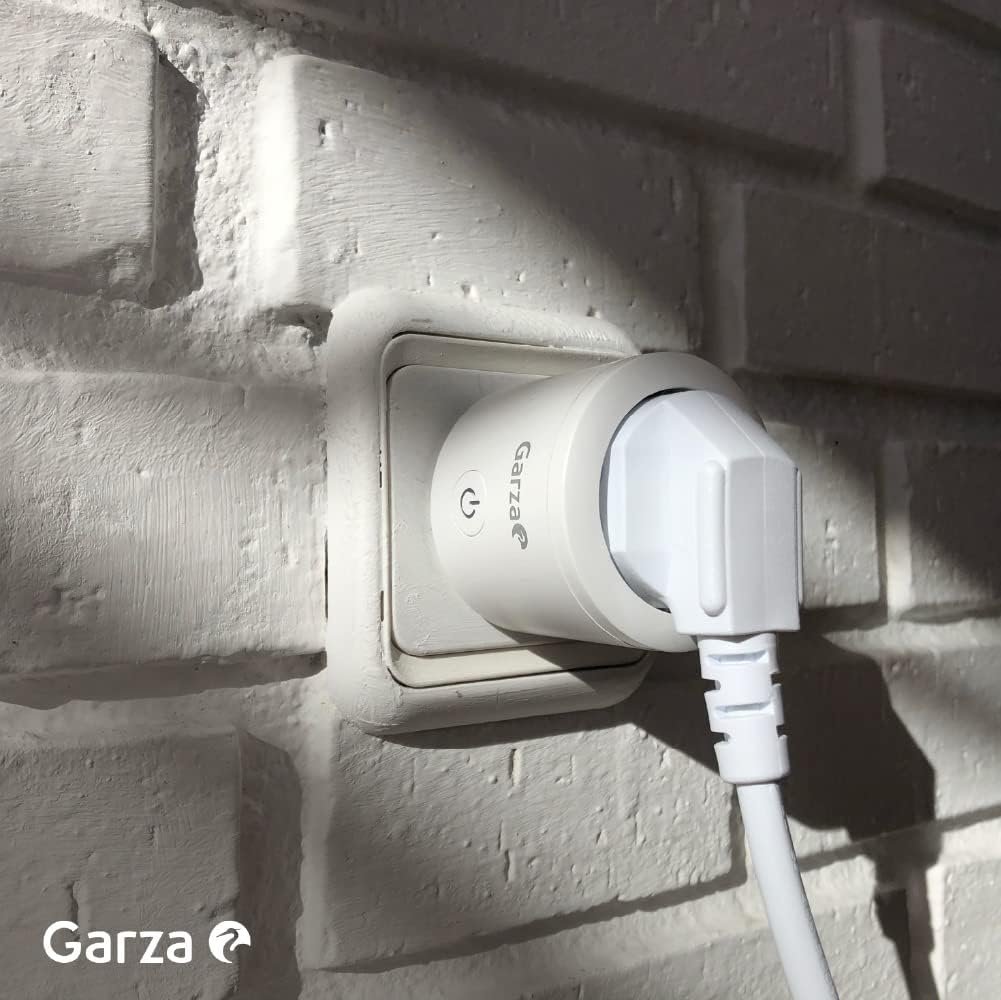 Garza Smart Wifi Enchufe Wifi Inteligente Programable 2.4GHz con Medidor de Consumo, App Remota y Control por Voz Alexa/Google, Blanco