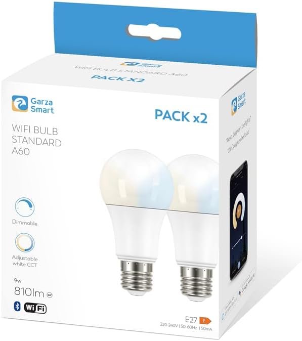 Garza ® Smarthome Bombillas LED Smart Standard E27 Wifi, Luz Blanca Neutra Regulable con Cambio de Regulación, Programable, Compatible con Amazon Alexa y Google Home, F