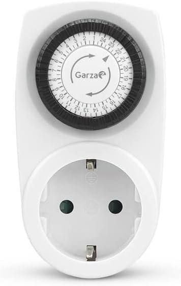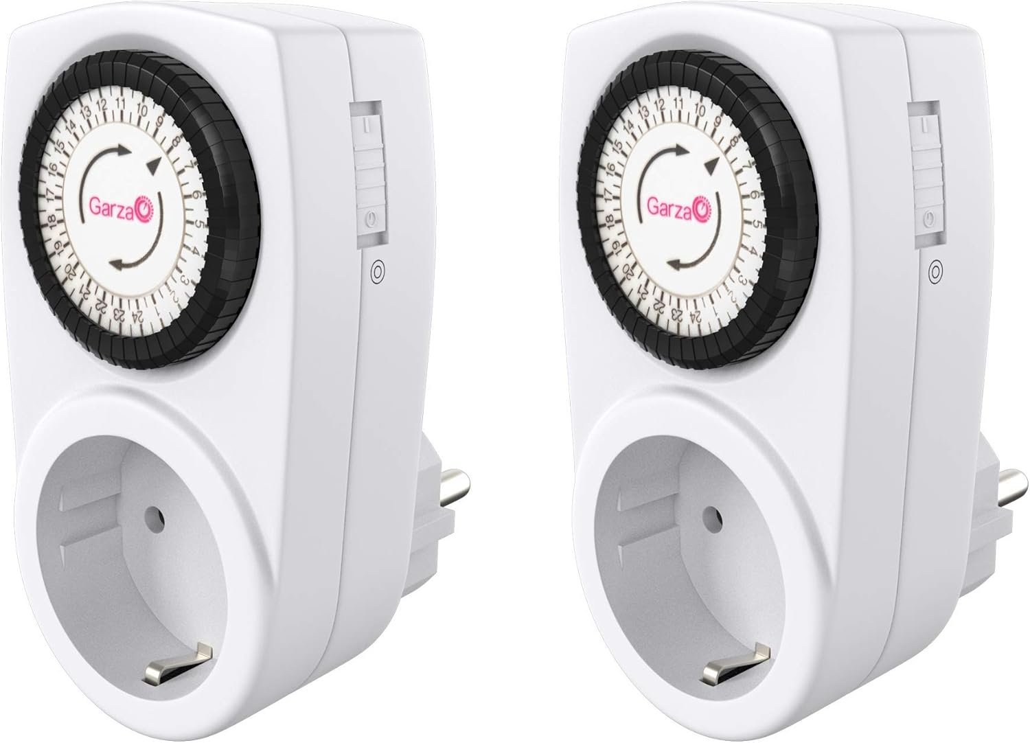 Garza – Temporizador analógico interior, juego de 2, enchufe programable, temporizador diario (24h), máx 3680W, 16a/230V/50Hz, blanco