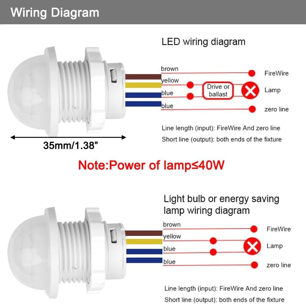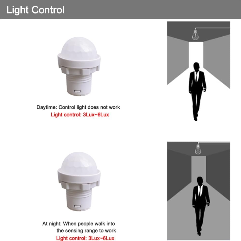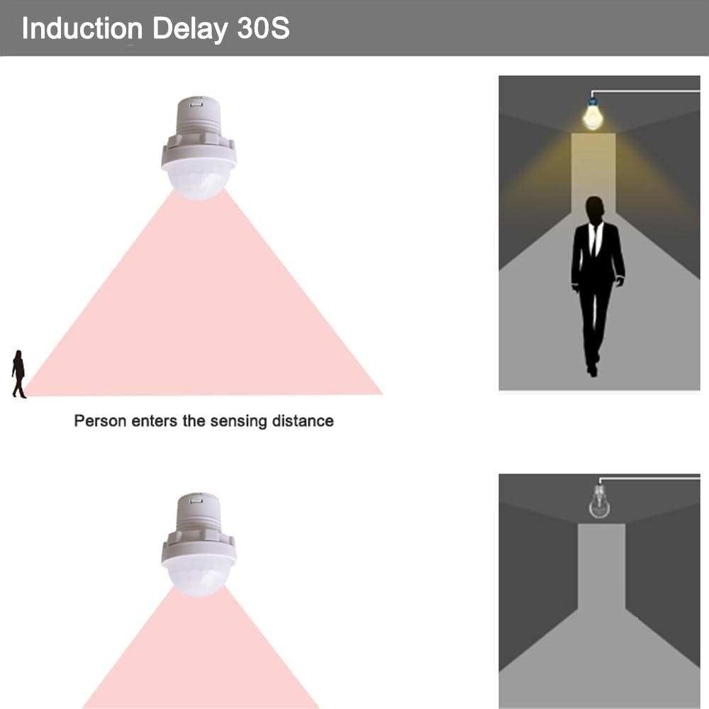 Especificación: Color: blanco. Principio de inducción: inducción infrarroja Voltaje de funcionamiento: 110-240V Potencia de carga: 1-40W Temperatura de trabajo: -20°C a +40°C Retraso en la hora de cierre: unos 30 segundos Iluminación inducida: 10 lux. Diámetro del orificio de montaje: 20 mm Rango de inducción: 3-5 metros Ángulo de inducción: 120 grados Ámbito de aplicación: downlight LED, luz de techo, luz de proyección. 【Inducción automática】 Este interruptor de sensor de movimiento utiliza el infrarrojo de movimiento del cuerpo humano como fuente de señal de control. Cuando la persona ingresa al área de detección, la carga controlada se inicia inmediatamente, lo cual es conveniente de usar. 【Ahorro de energía】 Este interruptor de sensor de movimiento para exteriores puede identificar automáticamente el día y la noche, y el sensor de movimiento enciende automáticamente la luz cuando se detecta movimiento, lo que ahorra energía, reduce el desperdicio y ahorra energía y protege el medio ambiente. Nota: No hay función de control de luz diurna (>3Lux) 【Alta sensibilidad】 Este interruptor de luz con detector de movimiento adopta detectores de alta sensibilidad, circuitos integrados y SMT. Cuando la gente se va, la lámpara retrasará automáticamente el apagado, lo que es conveniente y ahorra energía. 【Luz de seguridad】Este interruptor es seguro de usar tanto para accesorios comerciales como residenciales. Asegura la luz cuando está oscuro. Mantiene alejados a los intrusos seguros y no deseados. 【Amplia gama de aplicaciones】 Este interruptor de luz interior con sensor de movimiento tiene bajo consumo de calor y energía para aplicaciones en interiores, que puede usarse ampliamente en iluminación deportiva, pasillos, baños, sótanos, almacenes, garajes y otros lugares.