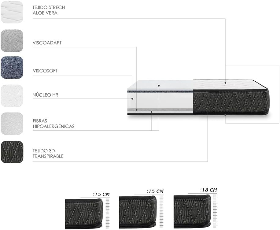 HOGAR24 ES Colchón Viscosoft 135 x 190 cm – Adaptación Ergonómica RelaxDream con Tecnología de Ventilación Air Fresh – Alto 18 cm.
