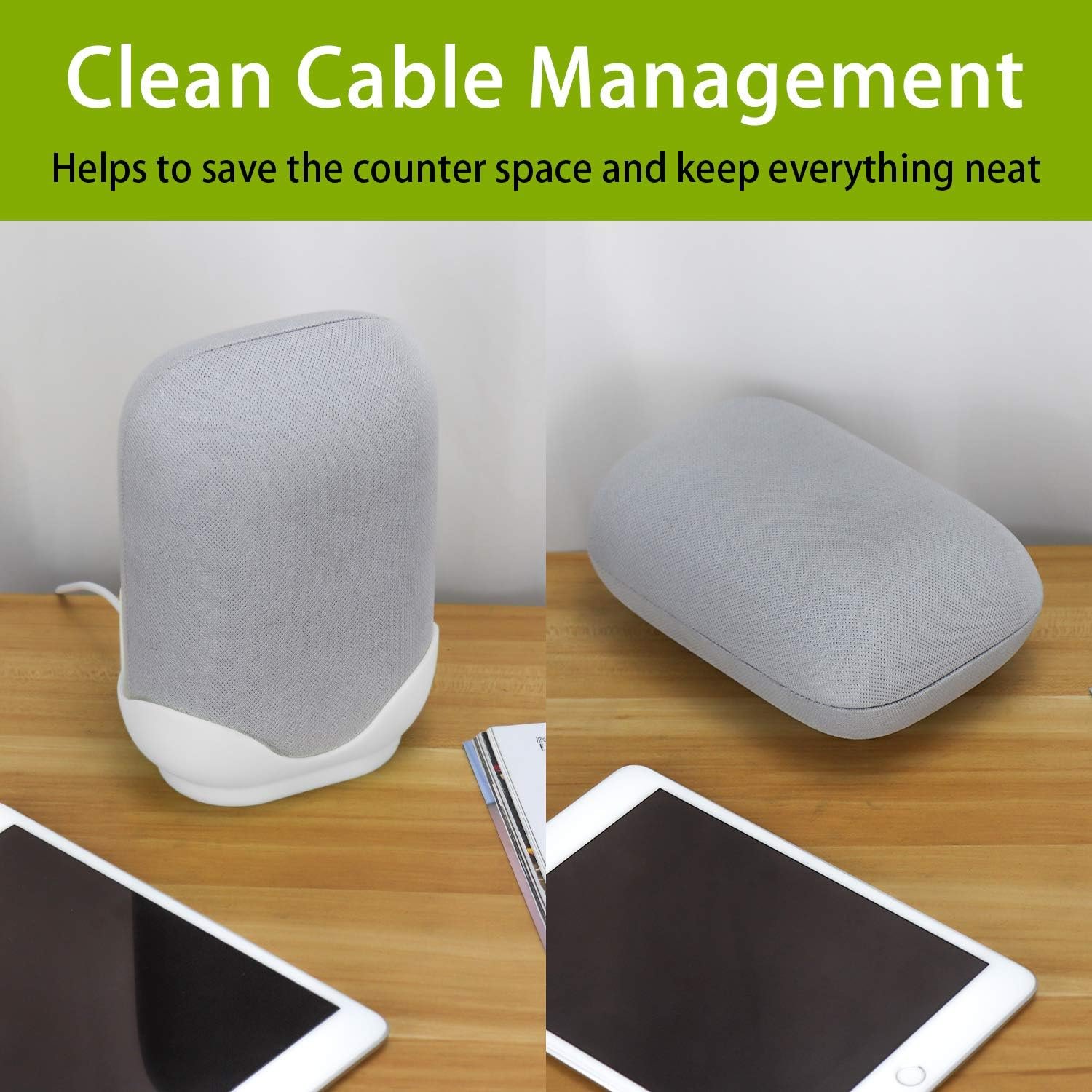 Diseño exclusivo: hecho de material ABS de alta calidad, duradero y resistente al desgaste, especialmente diseñado para Google Nest Audio, con perfecta compatibilidad, se ve limpio y clásico y hace que su habitación luzca hermosa y ordenada.