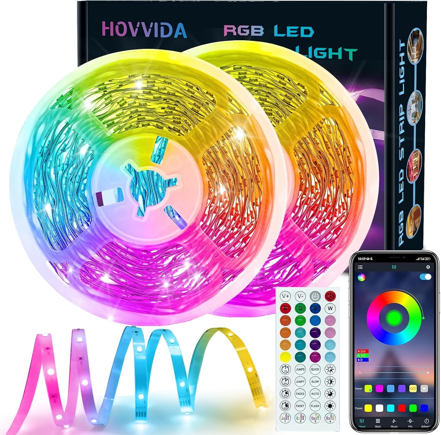 HOVVIDA Tira LED 30 M, 30 LED/Metro, 2 x 15 M, Luces RGB 24 V, 900 LED, APP y Control Remoto, Modo Música, LED para Dormitorio, Salón, Cocina, Dormitorio, Bar, Fiesta