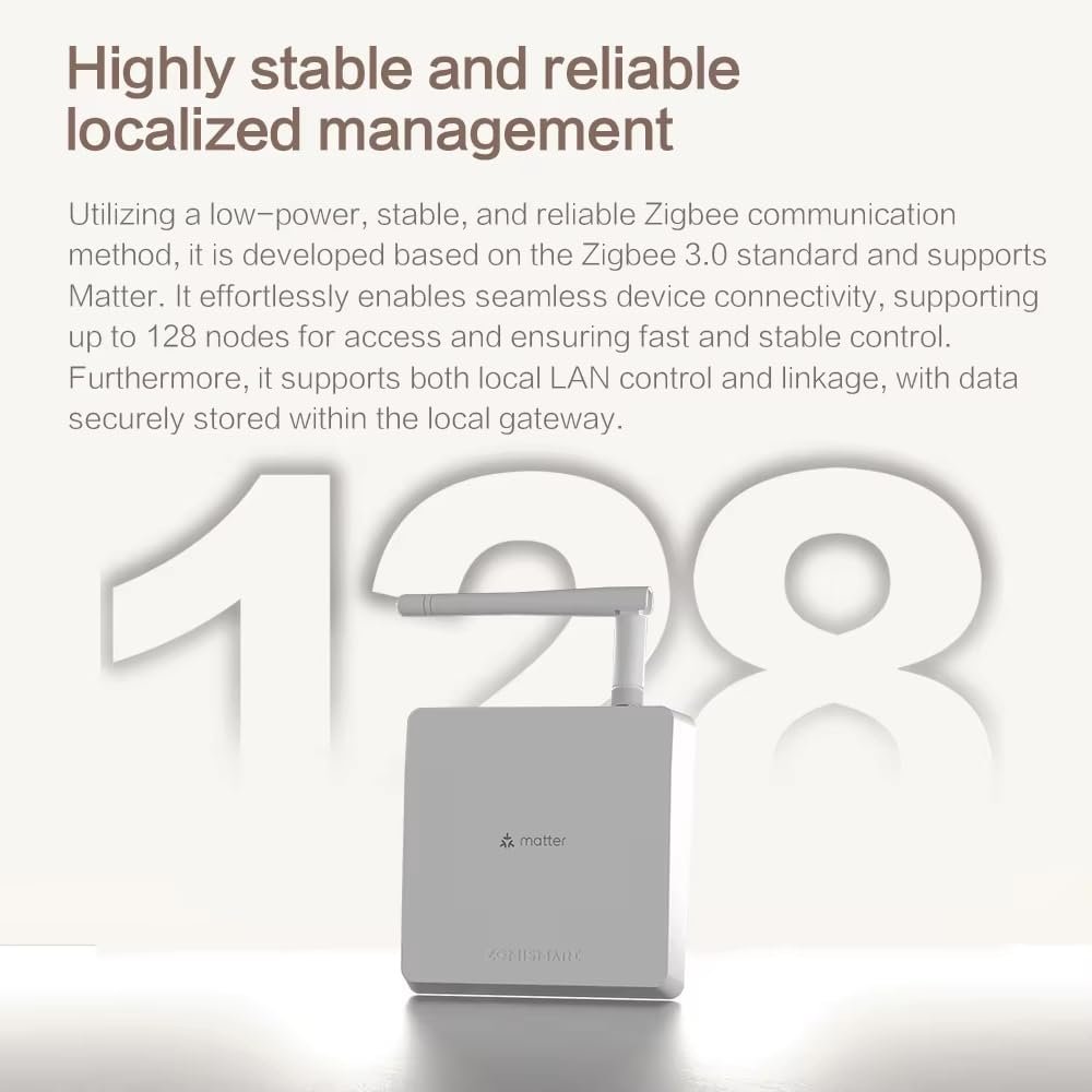 Hub M6 Matter Zigbee con antena, compatibilidad estándar Tuya Zigbee, soporte multiplataforma, señal de largo alcance y capacidad para 128 dispositivos