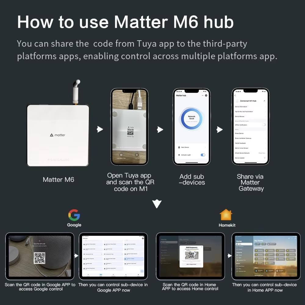Fotos: Hub M6 Matter Zigbee con antena, compatibilidad estándar Tuya Zigbee, soporte multiplataforma, señal de largo alcance y capacidad para 128 dispositivos