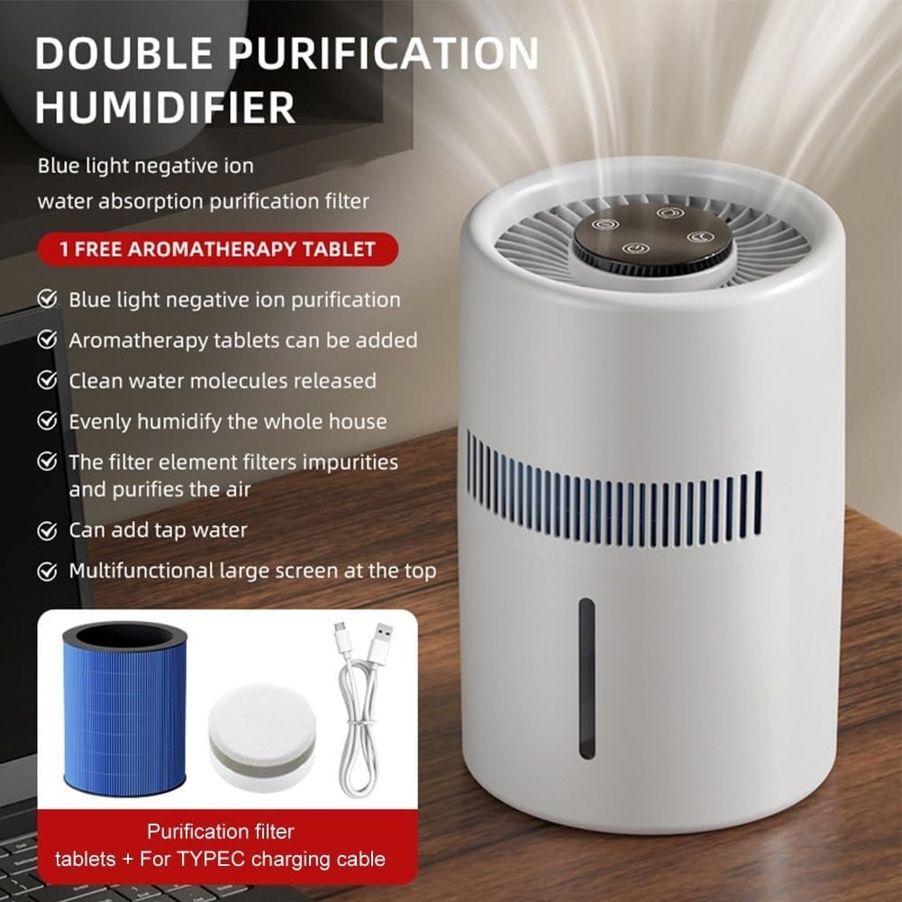 Humidificador inteligente de gran capacidad de 4 litros con purificación de iones negativos y funcionamiento silencioso para habitaciones de hasta 50㎡, blanco