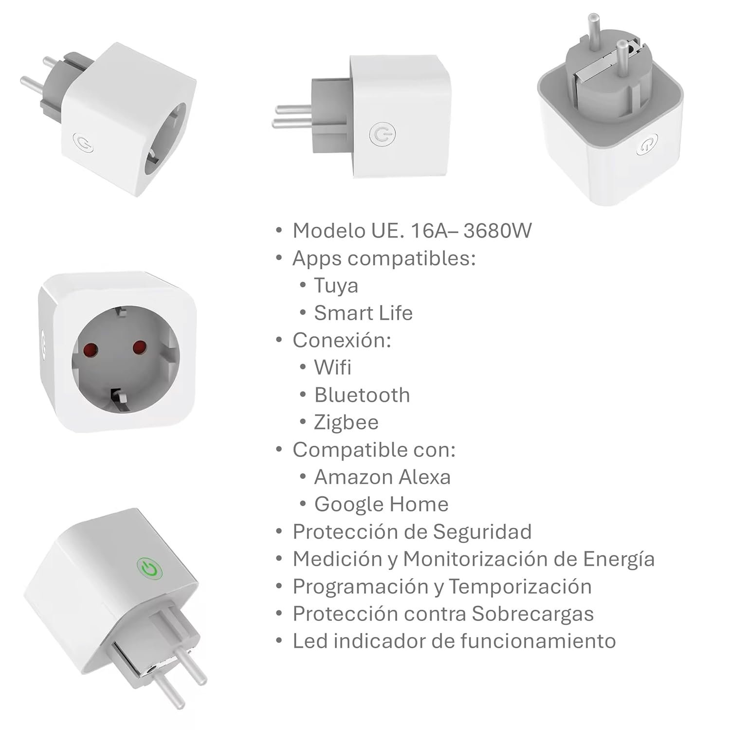 Katalia Enchufe Inteligente Wifi 16A 3680W Temporizador y Medidor de Consumo Control Remoto por App y Voz Compatible con Amazon Alexa, Google Home, Tuya y Smart Life, Programable