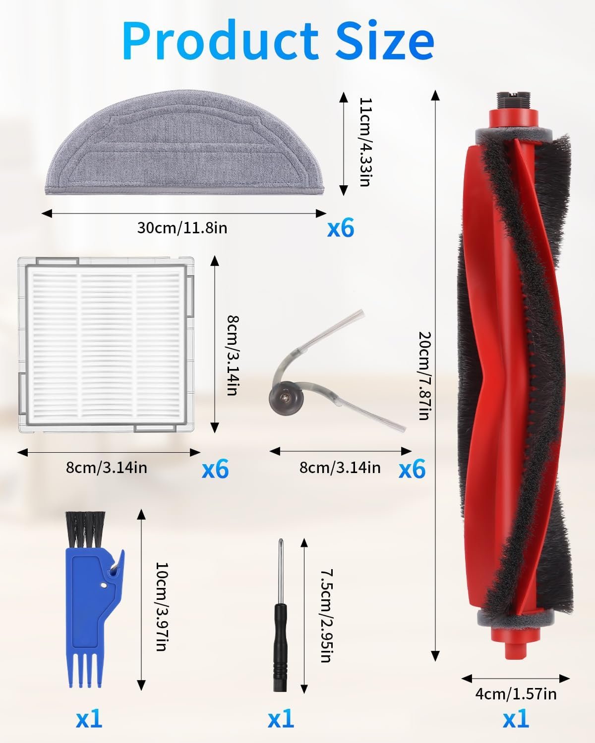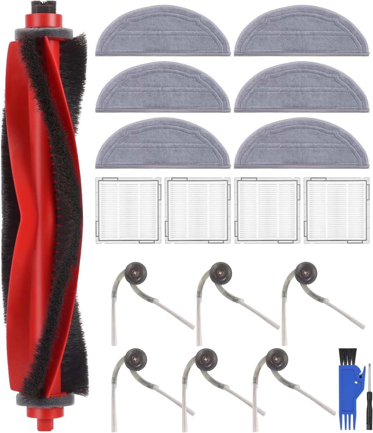 Tixexo Kit Accesorios Repuestos para Aspiradora Roborock Q10 X5+/Q10 X5/Q10 S5 / Q10 S5+, 1 Cepillo Principal, 4 Filtros HEPA, 6 Paños de Limpieza, 6 Cepillos Laterales, Repuesto para Roborock Q10 S5 Modelos compatibles: piezas de repuesto compatibles con aspiradoras Roborock Q10 S5 / Q10 S5+, adecuadas como repuesto de las piezas originales. Por favor verifique el modelo de su dispositivo antes de comprar. Cepillo principal y cepillo lateral: El cepillo principal para Roborock Q10 X5 está hecho de caucho ABS y cerdas suaves de nailon, es giratorio y evita que el cabello se enrede. Es potente y duradero, y recoge y tritura la suciedad de todo tipo de suelos. El nuevo cepillo lateral llega hasta las esquinas y bordes y limpia eficazmente todo tipo de suciedad sin dañar el suelo. FILTRO Y PAÑO DE LIMPIEZA: el paño de microfibra para Roborock Q10 S5 está cosido firmemente en los bordes, es muy absorbente y elimina eficazmente las manchas difíciles sin dejar rastro. El filtro HEPA captura eficazmente el 99,9 % de todos los pequeños alérgenos, como el polvo y el polen. PIEZAS DE REPUESTO ECONÓMICAS: el juego de piezas de repuesto para Roborock Q10 S5 incluye un cepillo principal x1, filtros HEPA x4, paños de limpieza x6, cepillos laterales x6, cepillo de limpieza x1 y destornillador x1 Servicio al cliente: la limpieza regular y el cambio de accesorios mejoran el rendimiento de la limpieza y prolongan la vida útil de la aspiradora. Los cepillos laterales, filtros y toallitas deben cambiarse cada 2-3 meses y el cepillo de goma cada 6 meses. Si tiene alguna pregunta sobre los accesorios para la aspiradora Roborock Q10 S5, contáctenos a tiempo