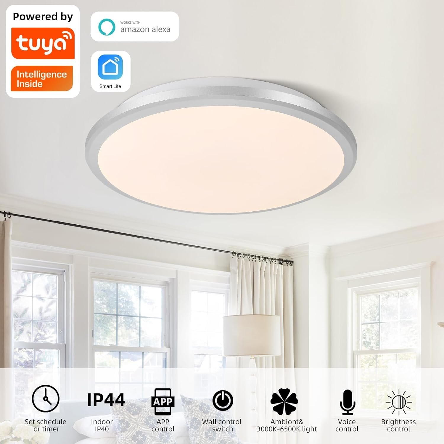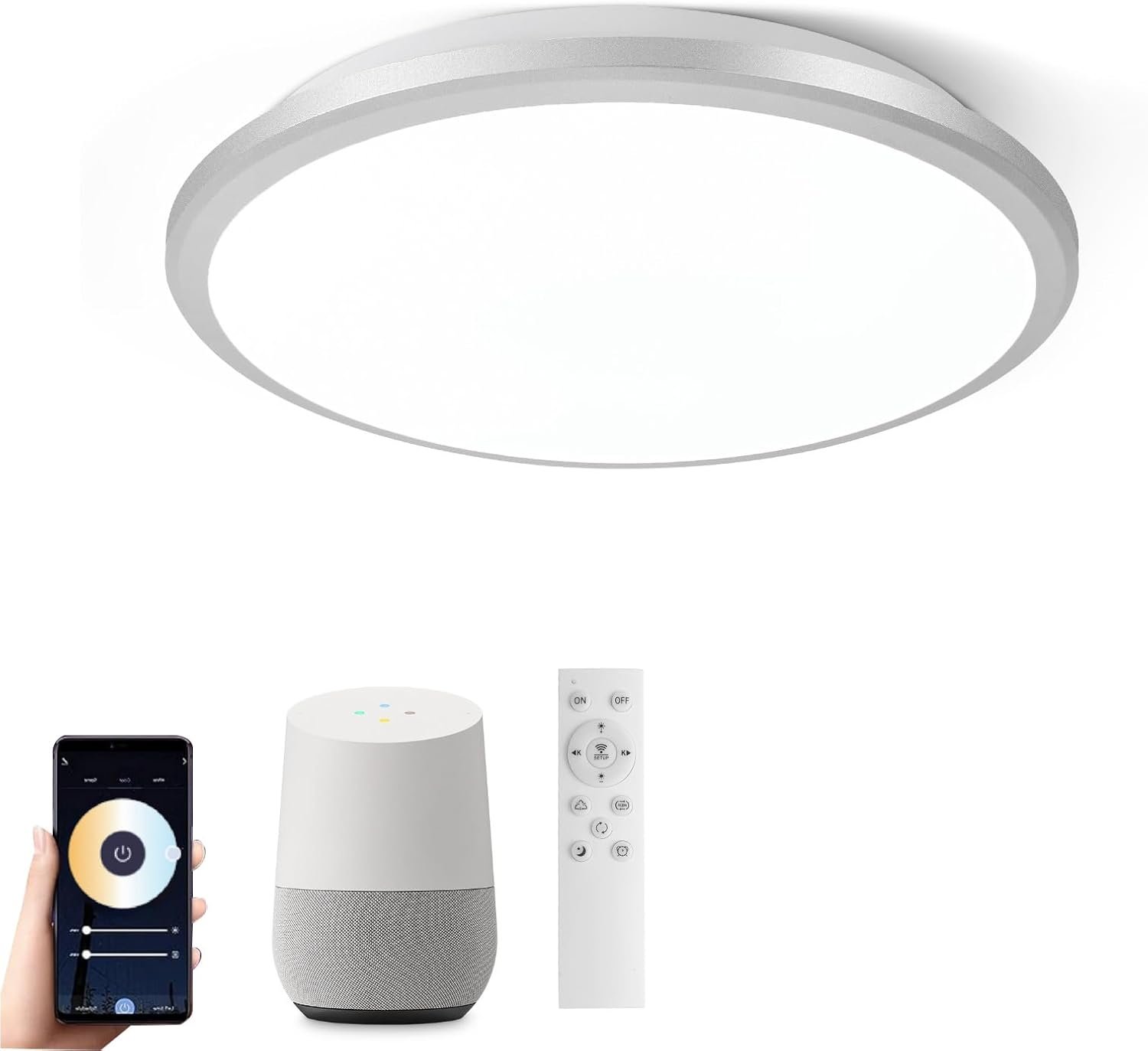 Fotos: Lámpara de Techo Inteligente LED Horevo 24W: Lámpara Regulable con Control Remoto, Aplicación, Control por Voz – Temperatura de Color Ajustable, Brillo – Diseño Moderno