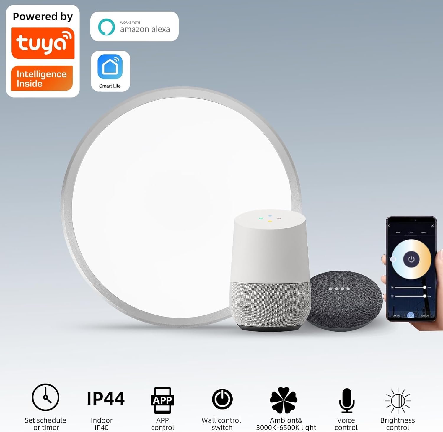 Lámpara de Techo Inteligente LED Horevo 24W: Lámpara Regulable con Control Remoto, Aplicación, Control por Voz – Temperatura de Color Ajustable, Brillo – Diseño Moderno