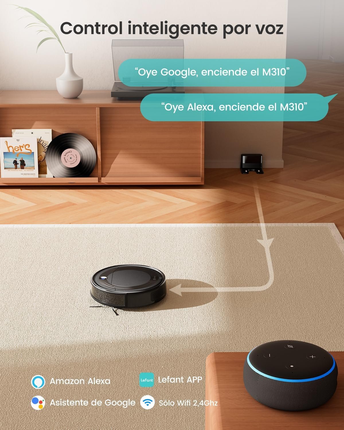 APLICACIÓN Y CONTROL POR VOZ CON ALEXA Y GOOGLE: controle el robot en cualquier momento a través de la aplicación Lefant: ajuste la succión, cambie los modos de limpieza o cree horarios. Compatible con Alexa y Asistente de Google. *Nota: Solo admite WiFi de 2,4 GHz.