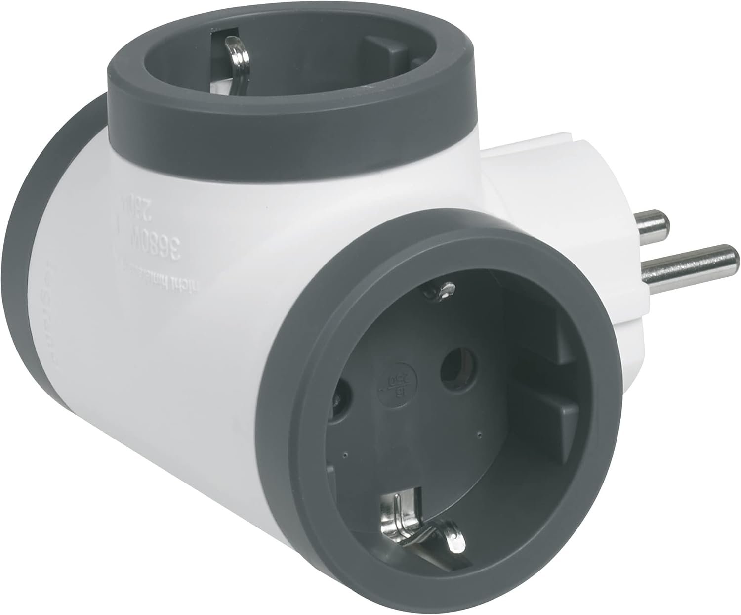 LEGRAND Adaptadores 2P+T, 3 Tomas Laterales/Tomas de Corriente, Plug Thief, Blanco/Gris Oscuro 694520