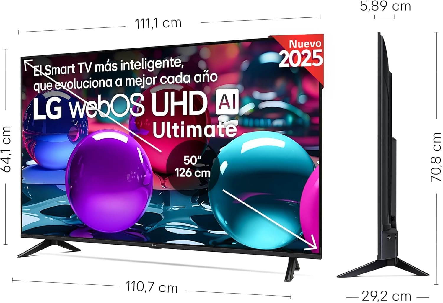 LG 50UA73006LA – TV 50″, UHD 4K, WebOS 25, Ultimate IA, HDR10 Pro, Super Upscaling, Dolby Digital Plus, Google Assistant, Negro